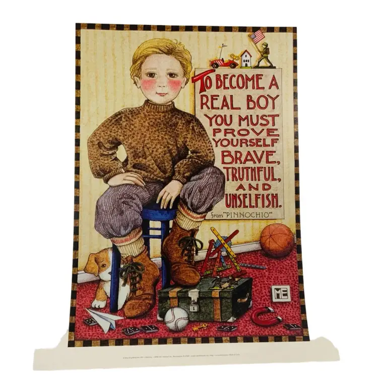 Pinocchio To Be A Real Boy © Mary Engelbreit Ink 1991 • A Real Boy • APME 922 • Sunrise®, Inc., Bloomington, IN 47402 • e-mail: info@interart.com • http:// www.interart.com • Made in U.S.A. Poster Lithograph