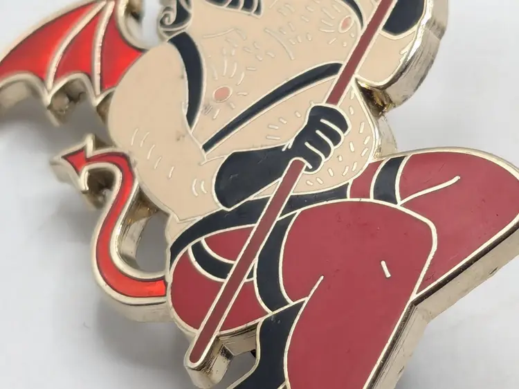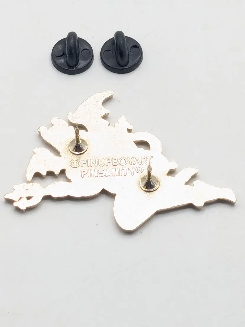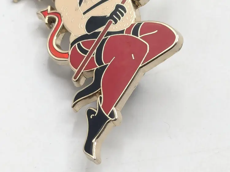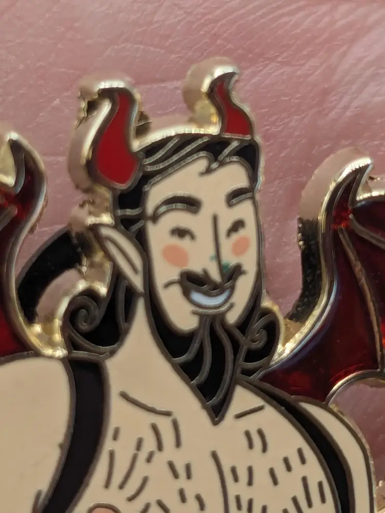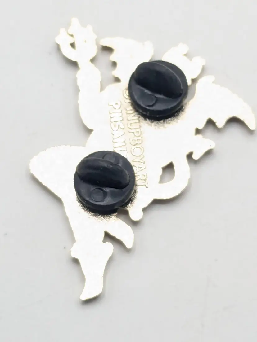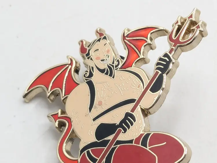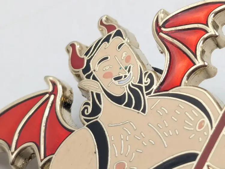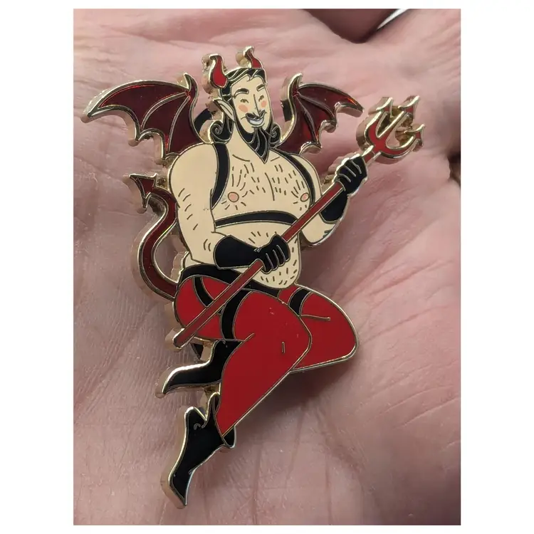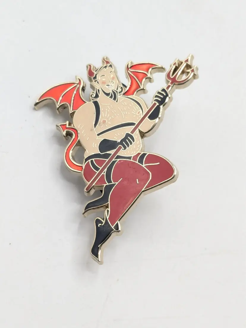 Good condition. Valentine treasure. Features a devil character with red wings and a trident. Measures 2" length x 1 1/2" wide. EN2