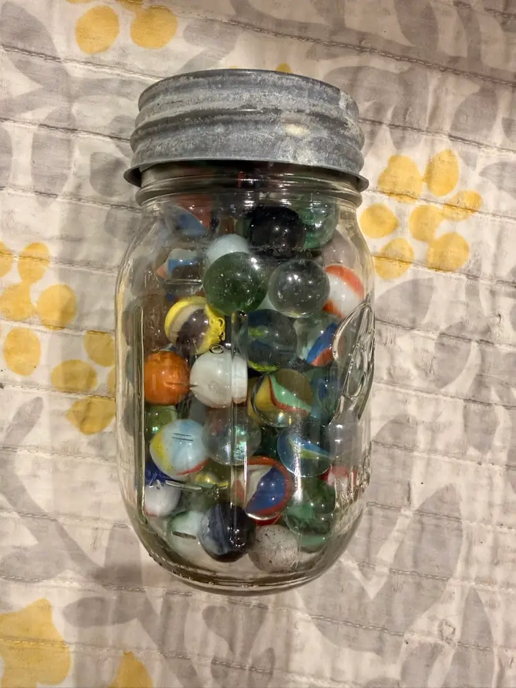 Pint Jar Of Marbles - Some Shooters And Glowers!