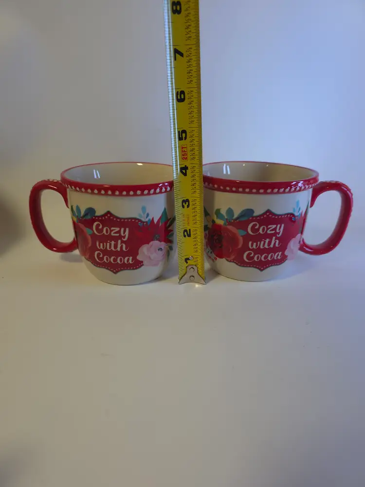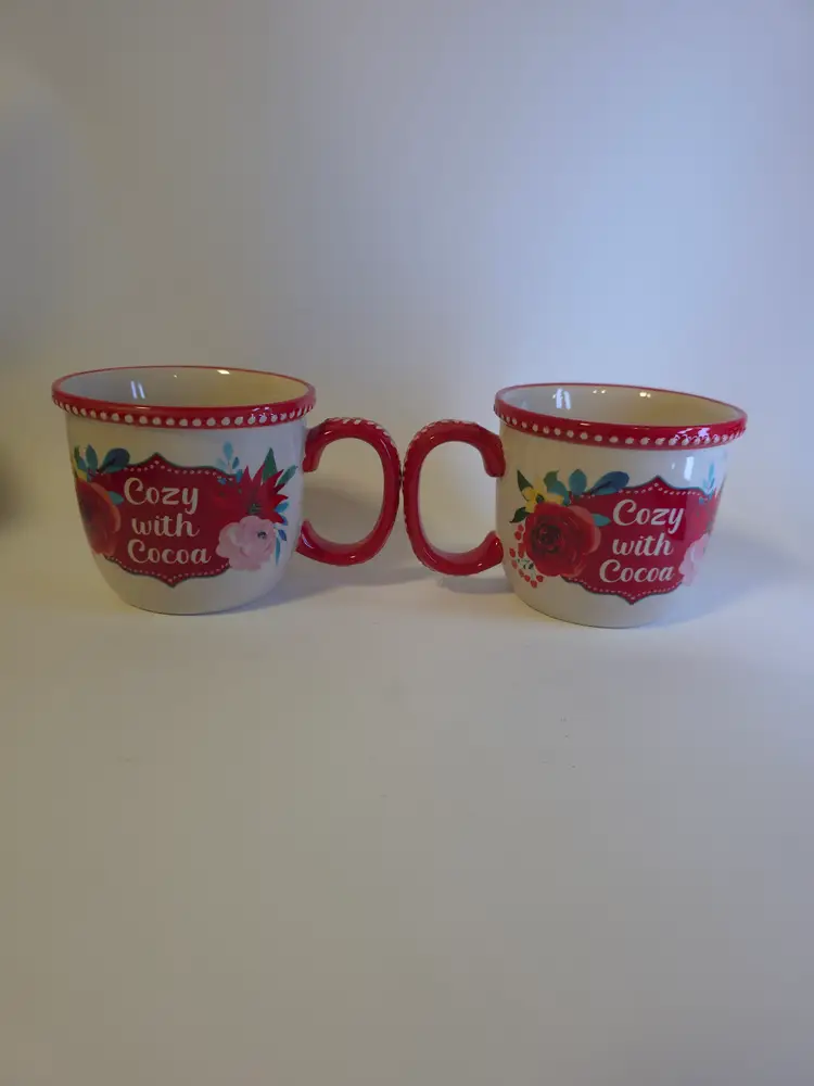 The Pioneer Woman Cozy With Cocoa Mugs Set of 2 in Red Floral is a charming and feminine addition to any kitchen or dining area. Made of durable stoneware and ceramic materials, these microwave safe and dishwasher safe mugs feature a beautiful red floral design that adds a touch of beauty and garden theme to your home. Perfect for all occasions like Mother's Day, Christmas, or birthdays, this set includes two mugs decorated with a cozy and inviting theme that is sure to bring warmth and comfort to your hot beverage moments.
