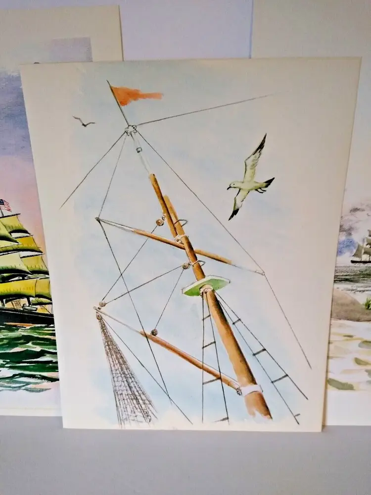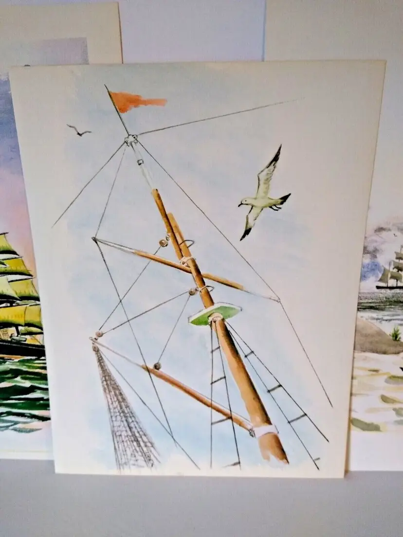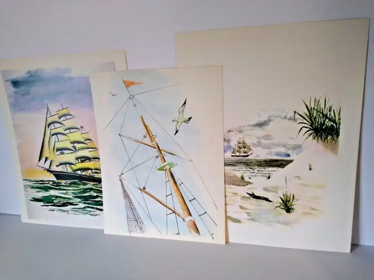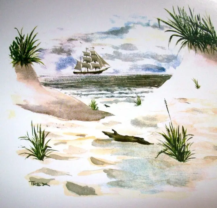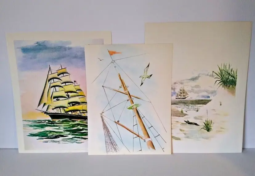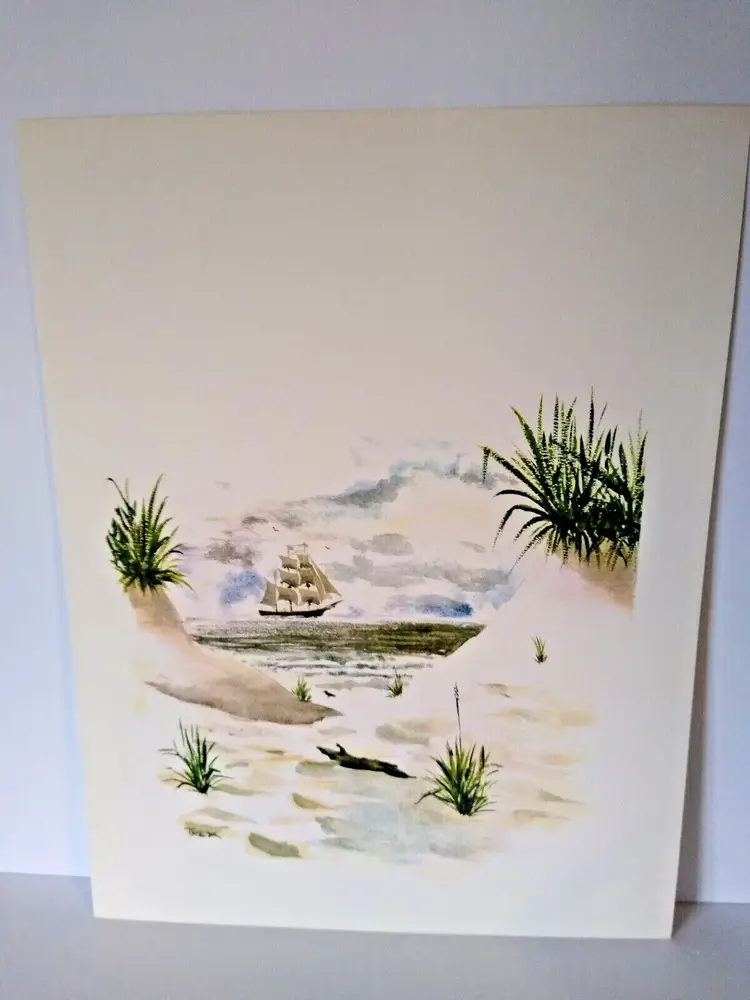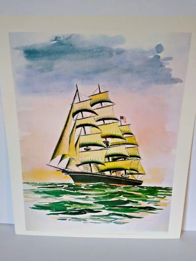 Size: Medium (up to 36 in wide) Region of Origin: Unknown Item Height: 13 in Item Width: 10 in Type: Print Culture: Americana Original/Licensed Reprint: Original Artist: T Rex, B. Trexler, Rex Production Technique: Lithography Framing: Unframed Style: Americana Material: Paper Theme: Art, Nautical Time Period Produced: Unknown Features: Vintage Subject: Ocean, Beach, Nautical, Sand, Dunes, Seashore, Seaside, Ships, Boats, Water Item Length: 13 in Year of Production: Unknown