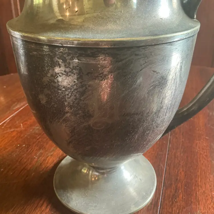 💐Pitcher: Silver Plate T & T #423 Monogrammed “R” 9 3/4” Height, 5” Diameter