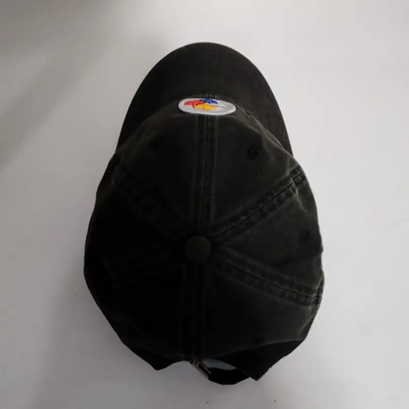 This hatbis in good condition with no noted damage. Features the iconic Steelers logo on the front. Adjustable with the strapback closure on the back.