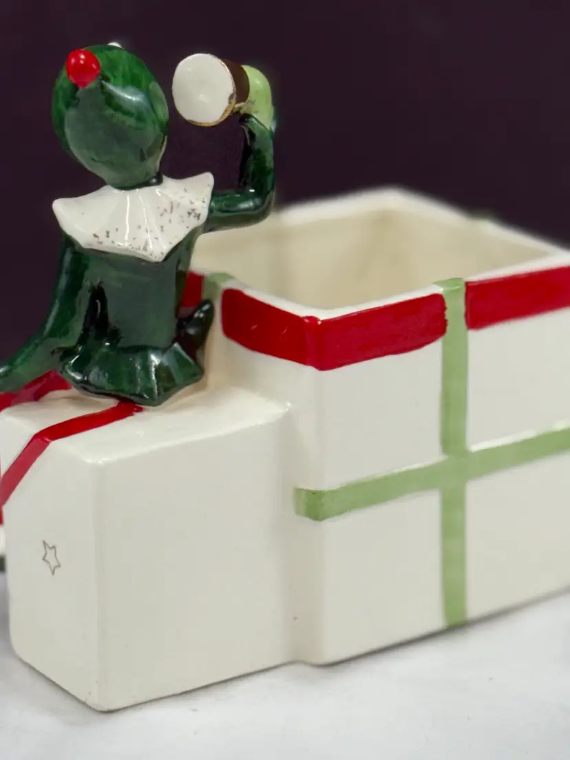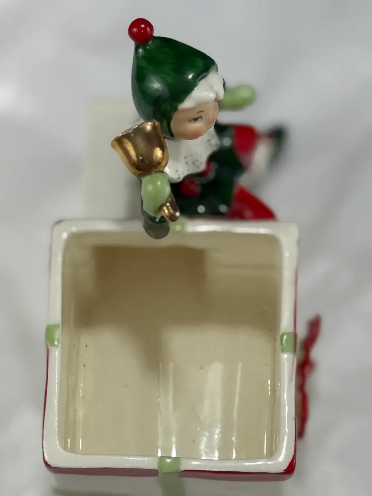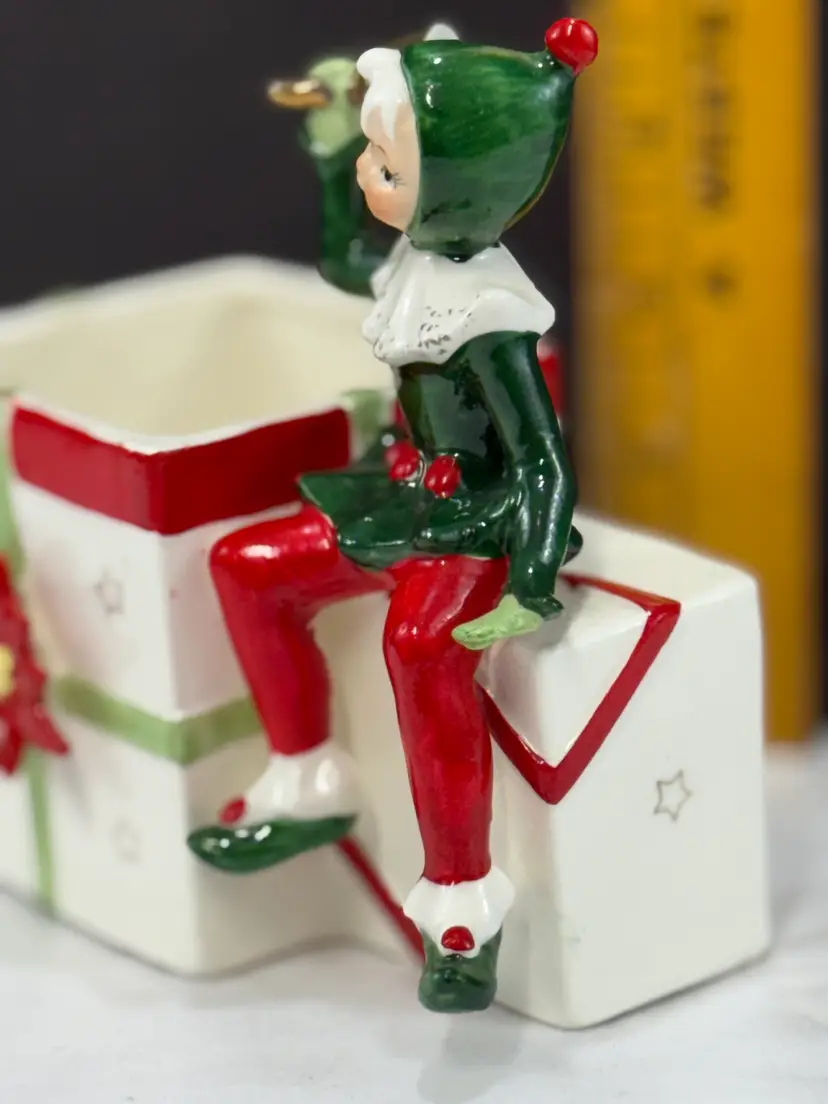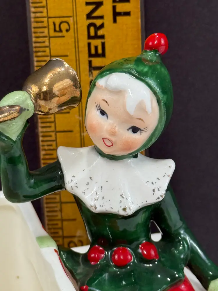 Vintage Christmas Napco Pixie Elf Poinsettia Bell Ringer Planter made in Japan.No chips, cracks or repairs. 51/2" high -41/2" wide and 3" deep.