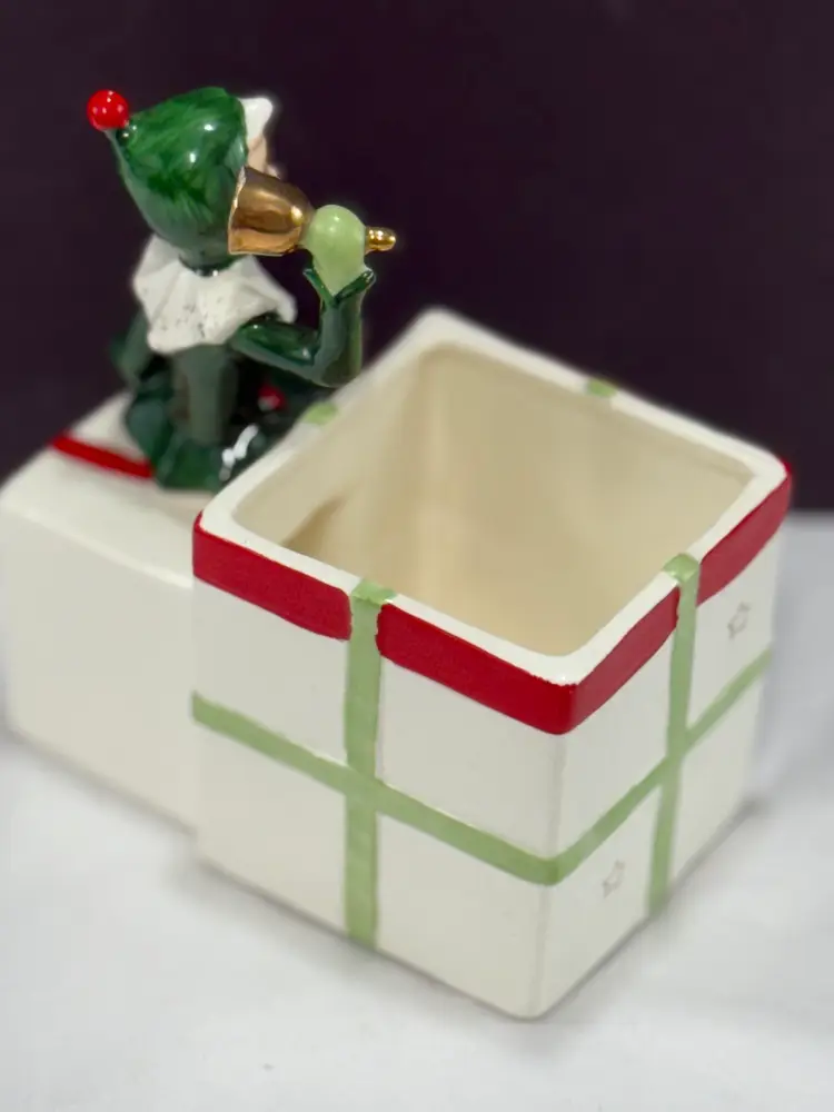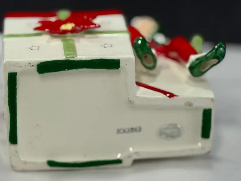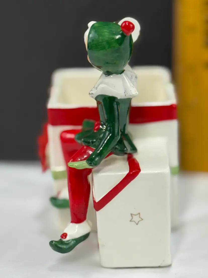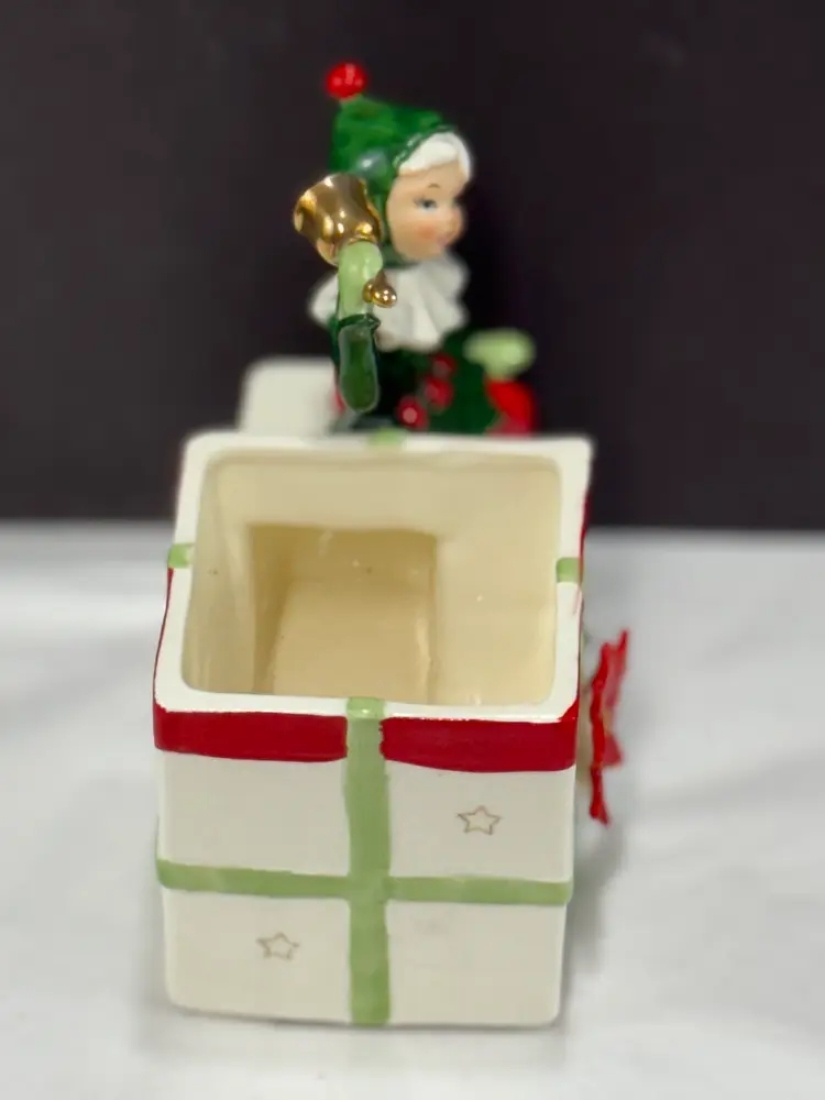 Vintage Christmas Napco Pixie Elf Poinsettia Bell Ringer Planter made in Japan.No chips, cracks or repairs. 51/2" high -41/2" wide and 3" deep.