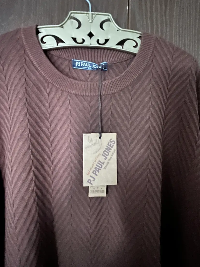 This PJ PAUL JONES crewneck sweater delivers easygoing style with its rich brown tone and clean herringbone knit that elevates any casual outfit. Soft, stretchy and NEW with tags, it is perfect for cool weather layering and feels great the moment you pull it on.