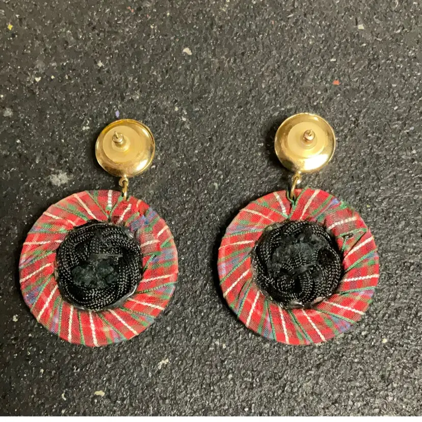 Plaid Black And Goldstone 90s Earrings