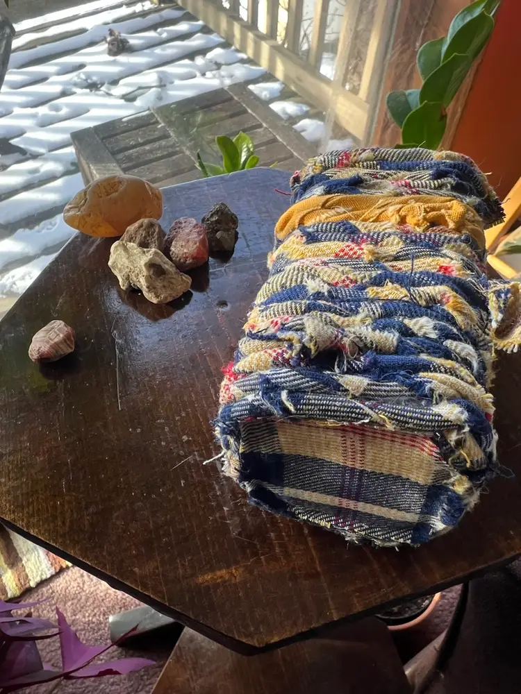 Cachepot hand crafted with vintage/upcycled fabric and upcycled plastic. 100% of the profits will go towards Minnesota mutual aid which will be donated to prismmpls.org Any overage on shipping cost will also be donated to mutual aid. Rocks not included π
