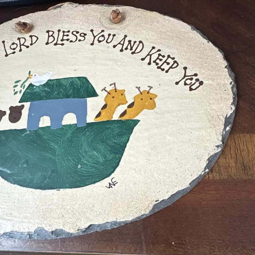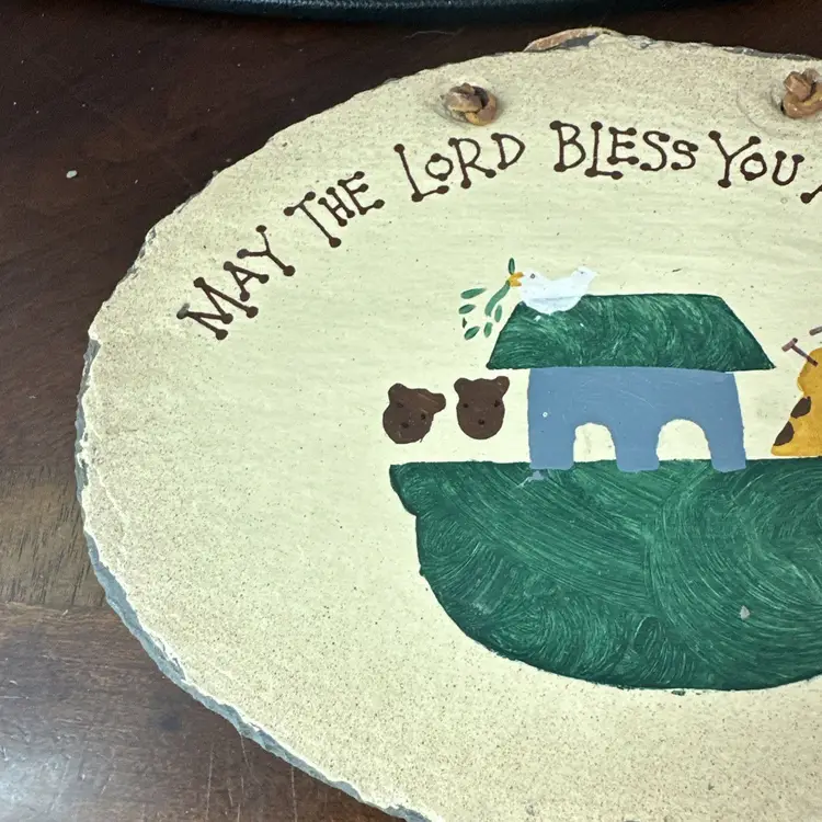 Elevate your space with the serene touch of this hand-painted plaque, a perfect addition to any nursery or bedroom. Crafted from slate, its natural elegance provides a versatile backdrop for the delicately applied, non-perishable artistry that captures the essence of peace and protection. The oval shape and decorative style offer a tasteful complement to your room's decor, while its religious theme serves as a gentle reminder of comfort and guidance. This unbranded piece, simply titled "Plain Jane," eschews the ornate in favor of a clean, plain finish, allowing its hand-painted detail to stand front and center. Its durable slate construction ensures it remains a lasting symbol of tranquility and faith in your home. Whether as a thoughtful gift or a personal touch to your own space, this plaque is a beautiful embodiment of blessings and keeping. This measures 9X6.5 inches.