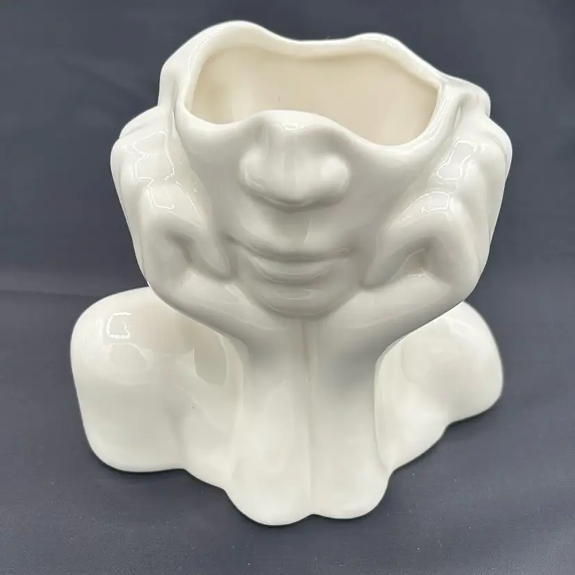Planter- chin in hands 5x5.5x3.5”, 2” opening