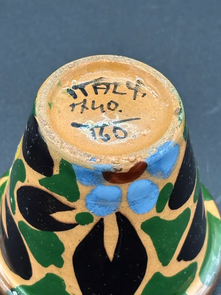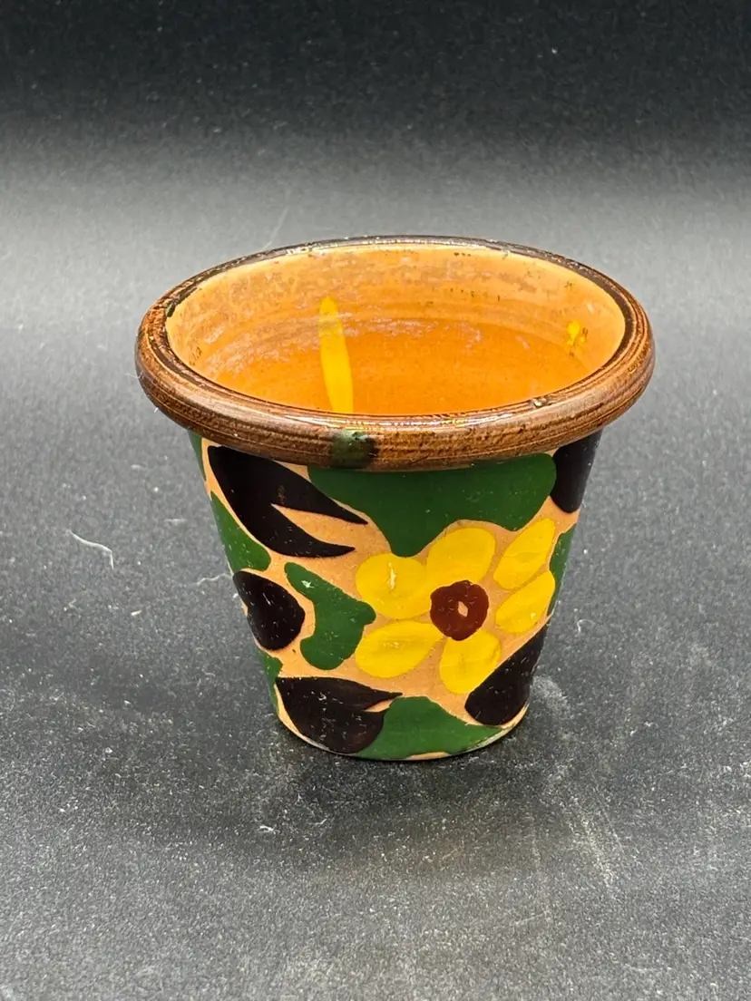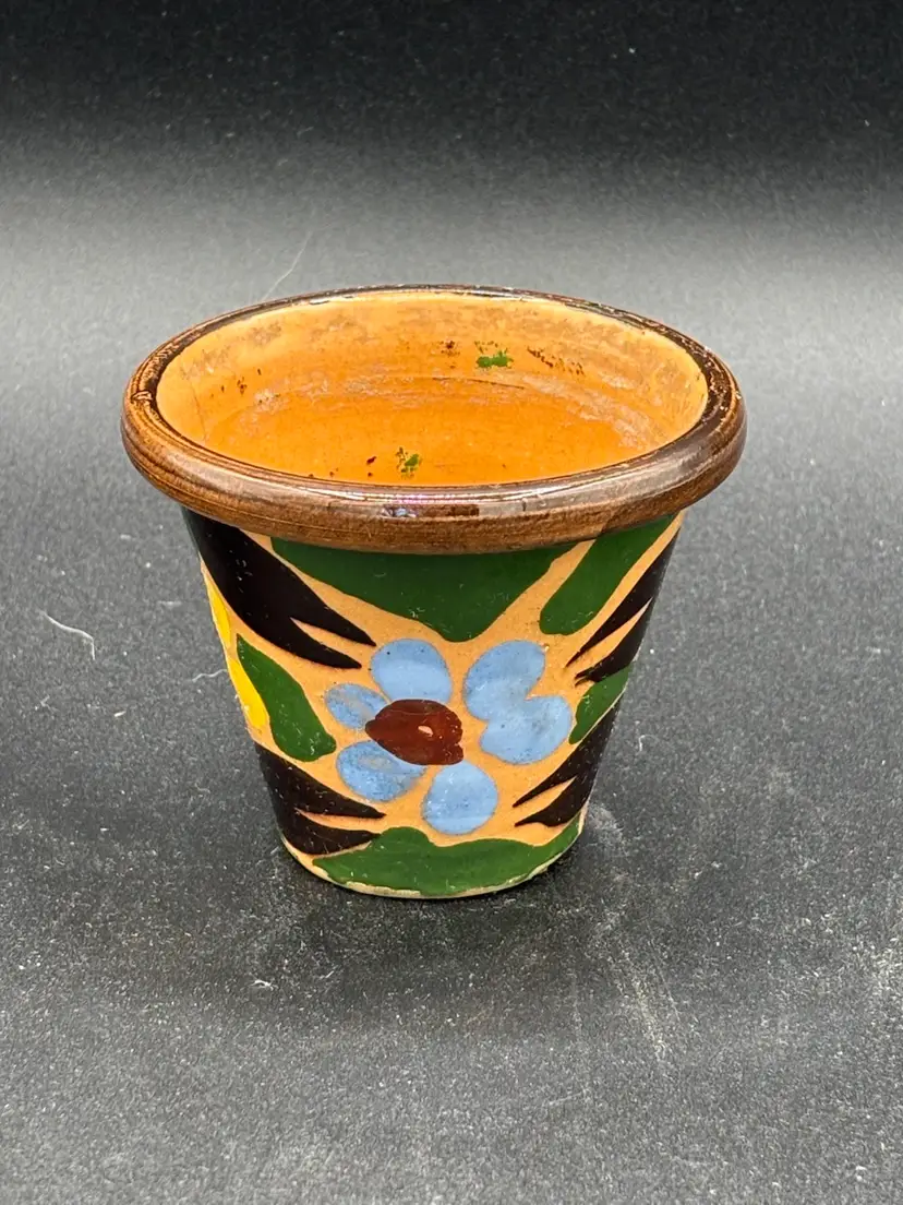 Planter - mini Italian glazed hand painted terrra cotta floral 2.25” opening, 1” bottom, 2”h