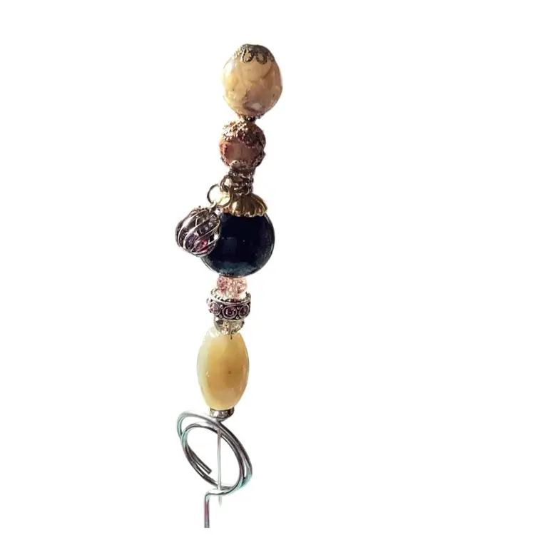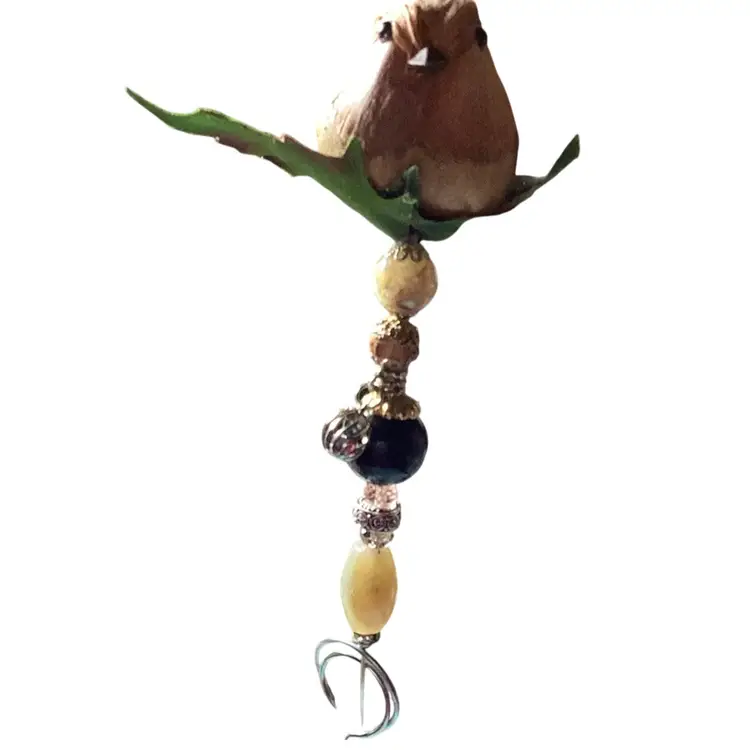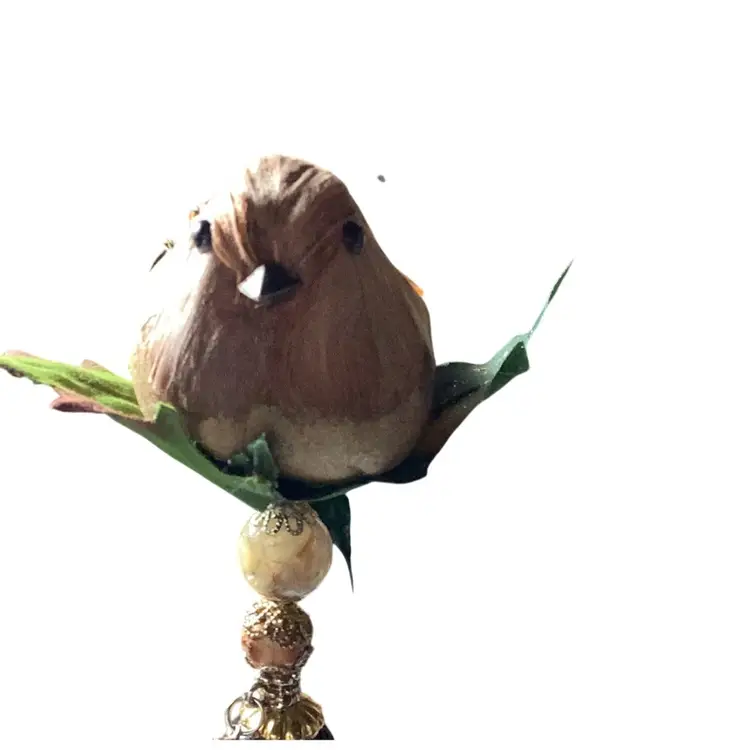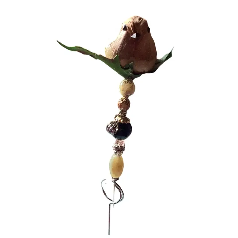 Here is a handmade Pokey Tool beaded with a Bird on top sitting in a tree. Put it in your plant and let it dangle and make beautiful music. This one has a brown bird on the top handmade by me.