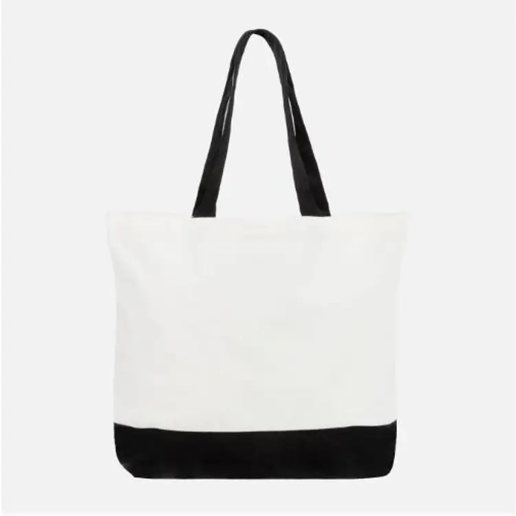 Black Bottom Tote 100% cotton canvas Width 15" (side to side at widest point). Depth 4.7" (exterior front to back of the bag). Height 18.5" (bottom of the bag to the highest point of the main compartment).