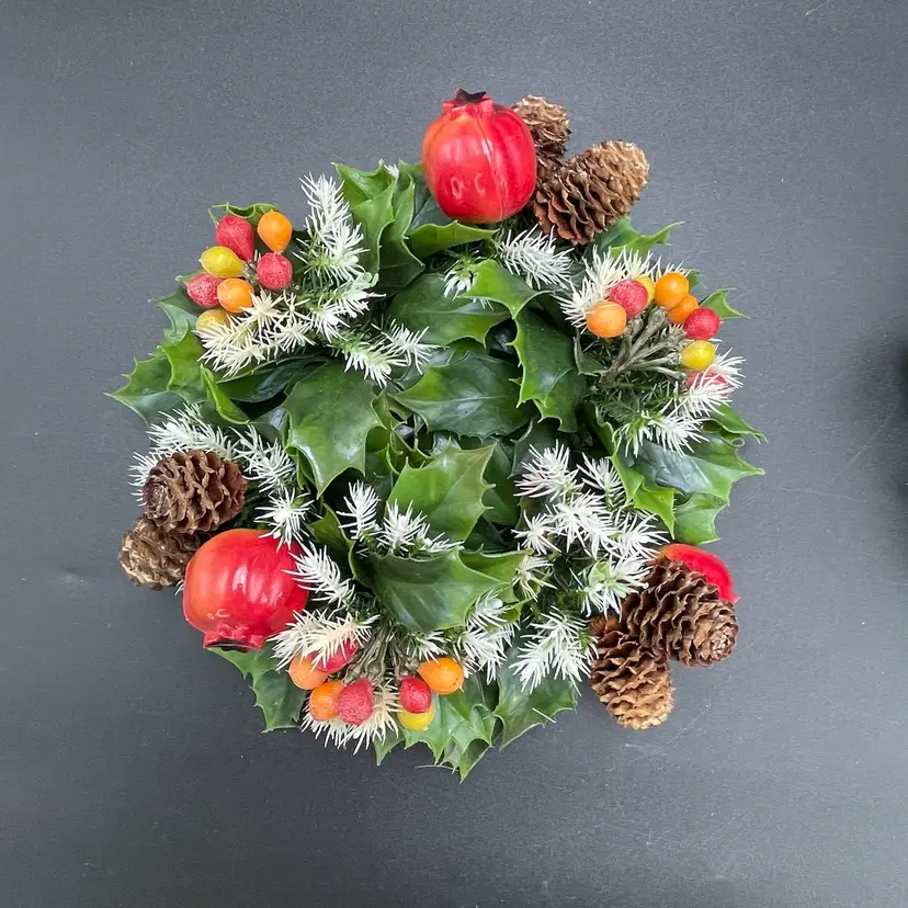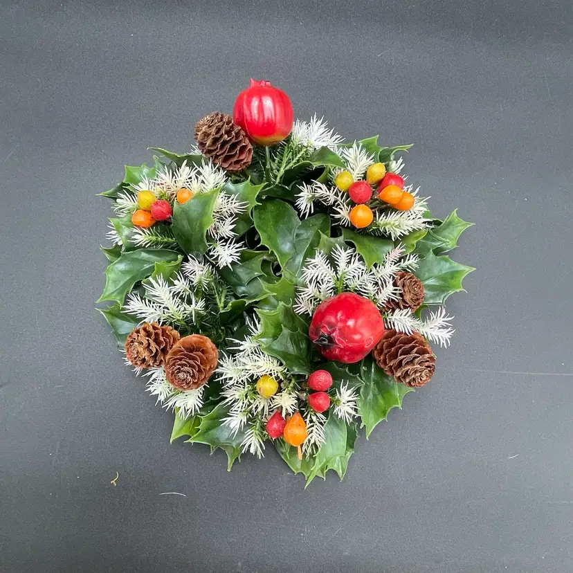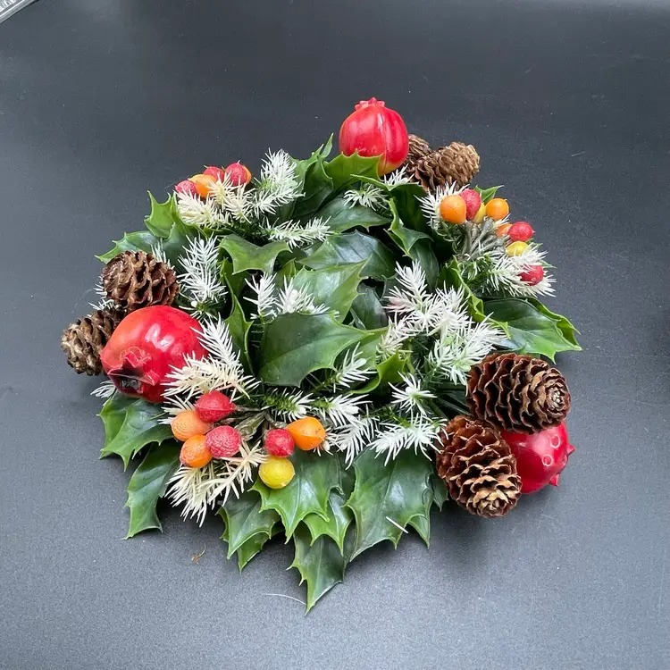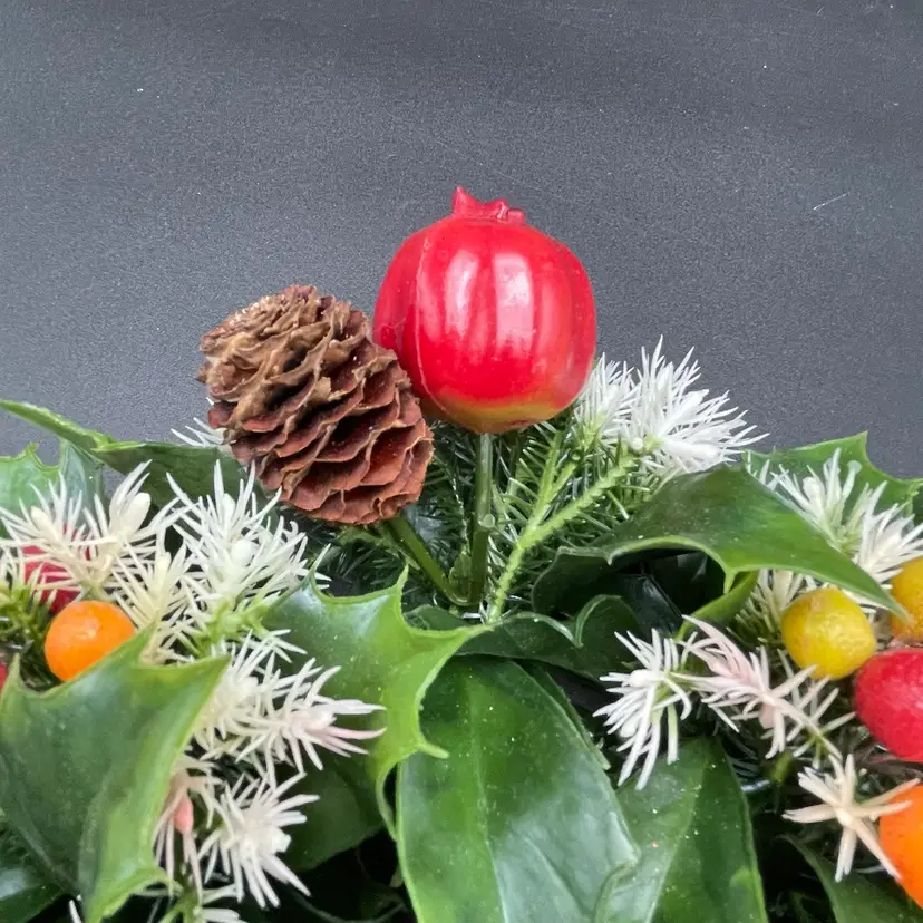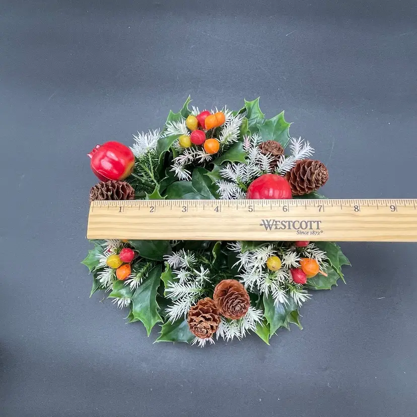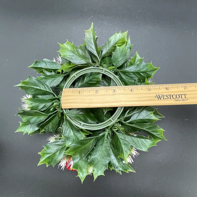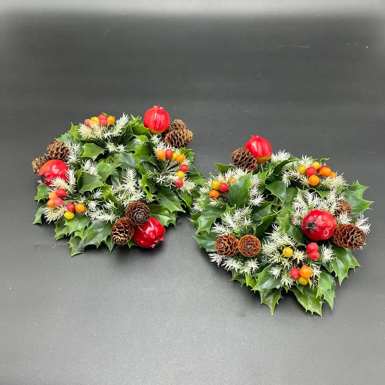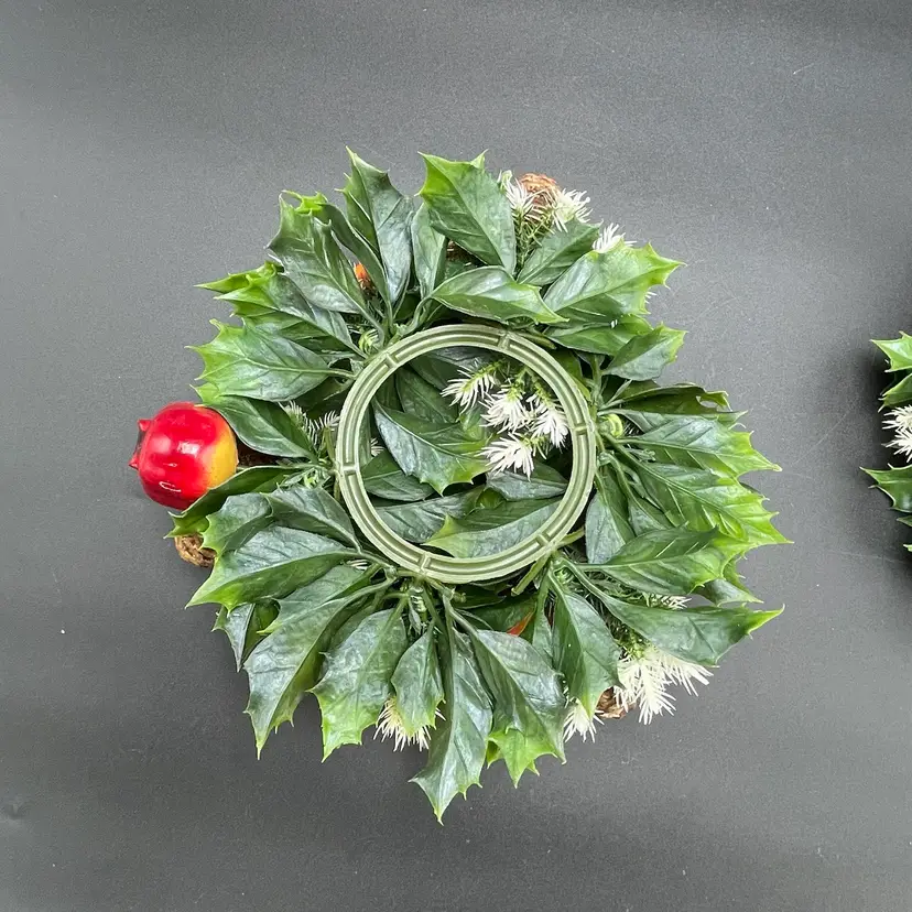 This is a vintage set of 2 plastic holly and berries candle rings. Each measure approximately 7" in diameter. The candle ring itself measures approximately 3" in diameter. One ring is missing a pinecone as shown in pictures. No other major flaws. Smoke free home.