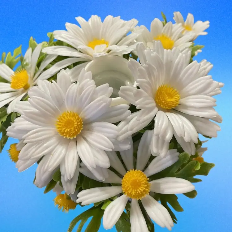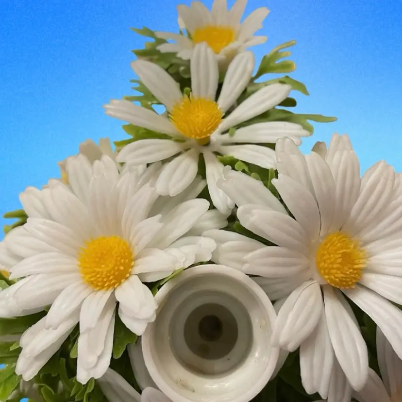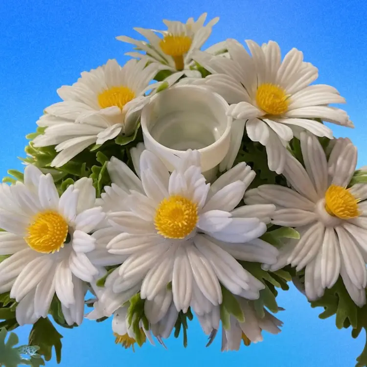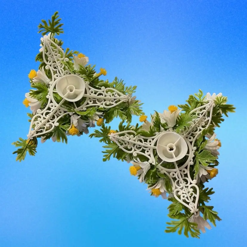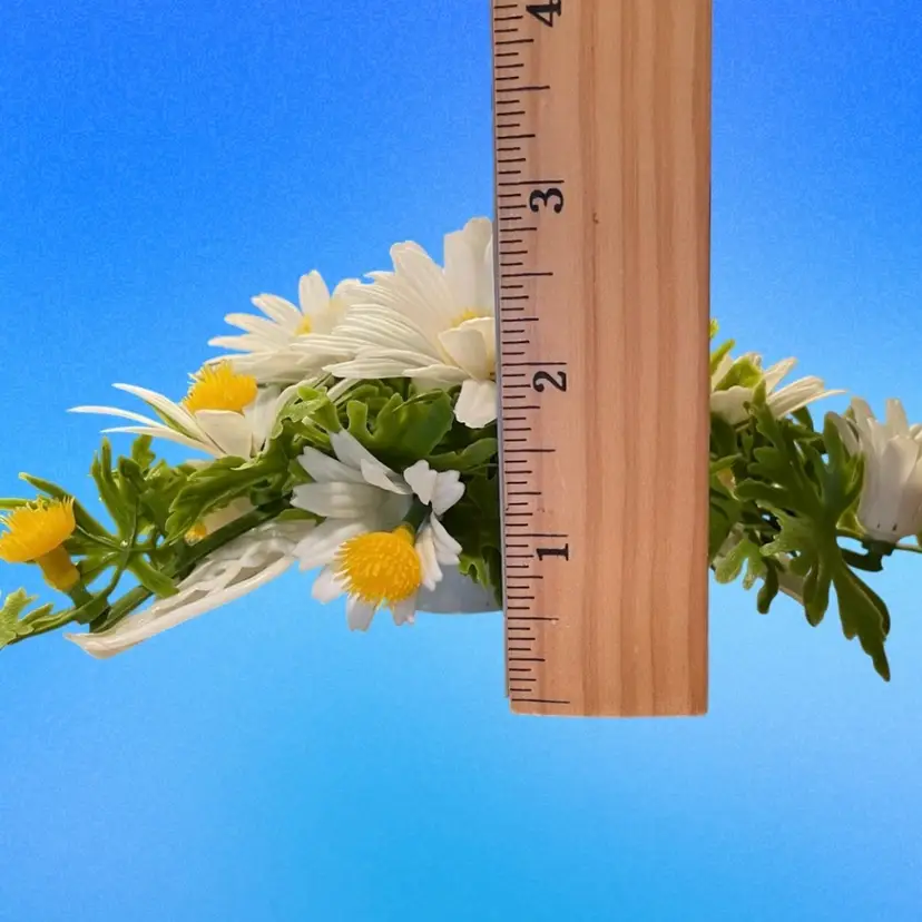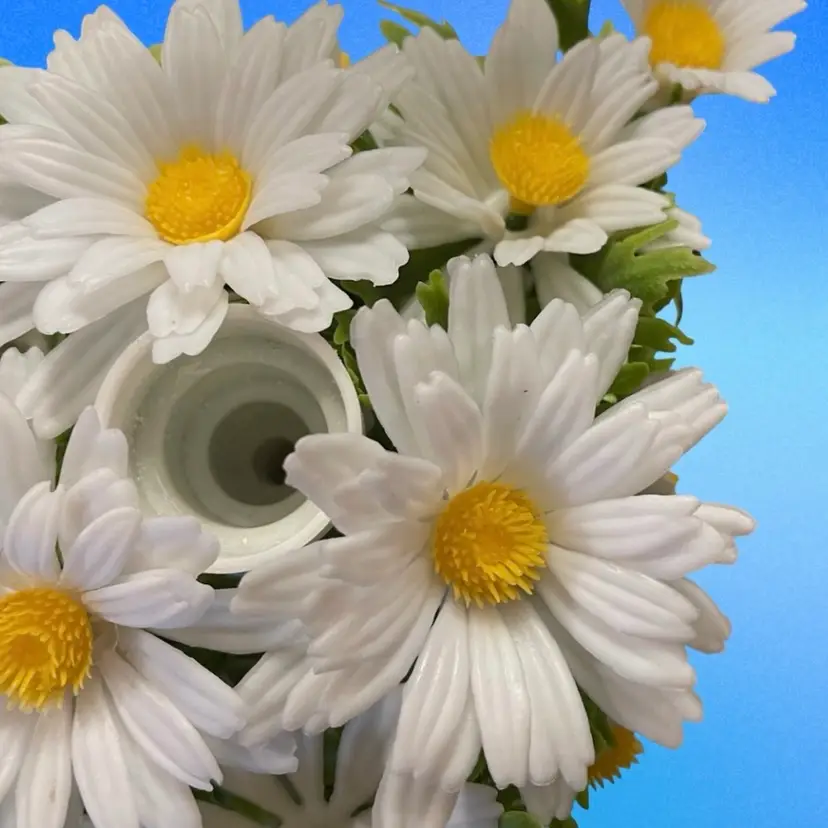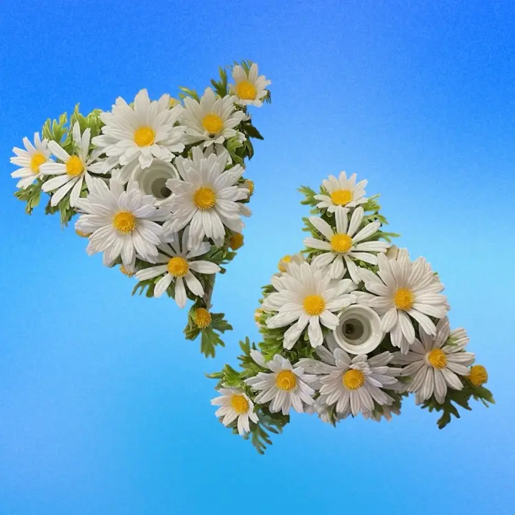 This is a vintage set of 2 plastic daisy candle holders. Made in Hong Kong. Each one measures approximately 6.25" long x 2.75" tall. No major flaws.