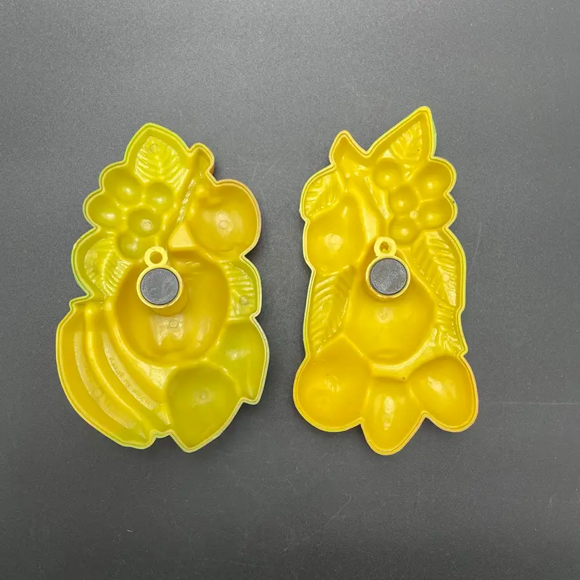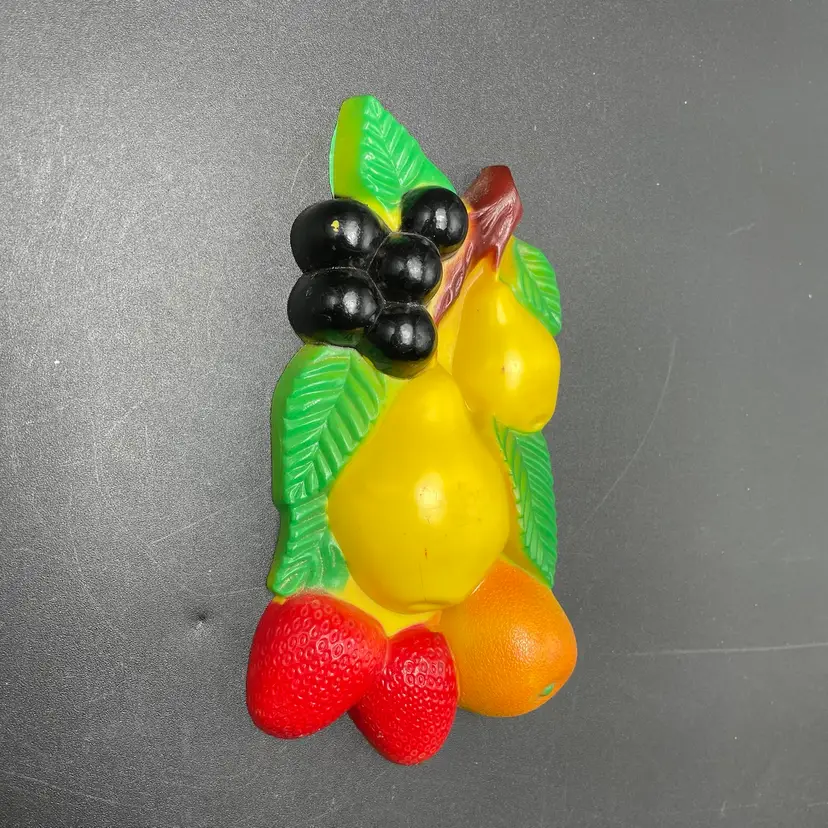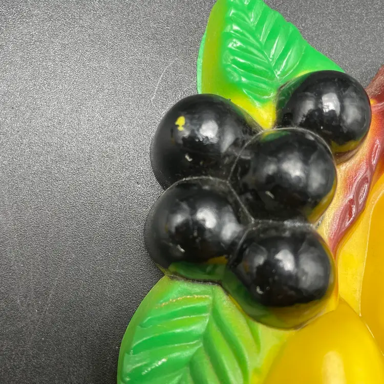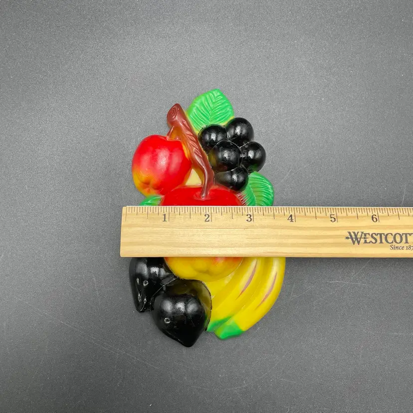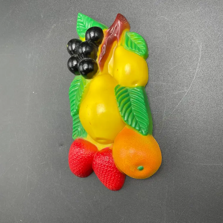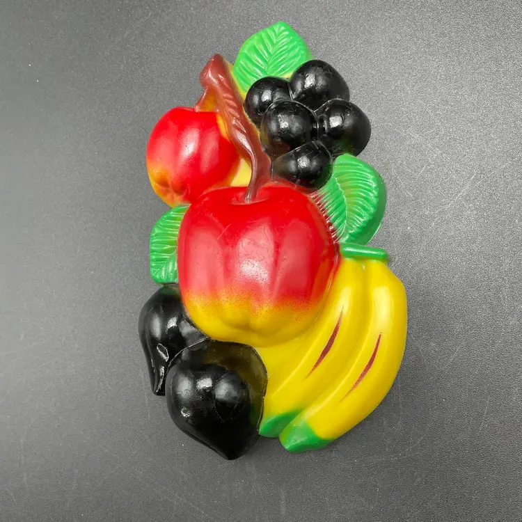 This is a vintage set of 2 plastic bunches of fruit magnets/wall hangings. The magnets are not very strong. Each measure approximately 7" long x 3.5" wide. There is some wear due to age and use as shown in pictures. No chips or cracks.