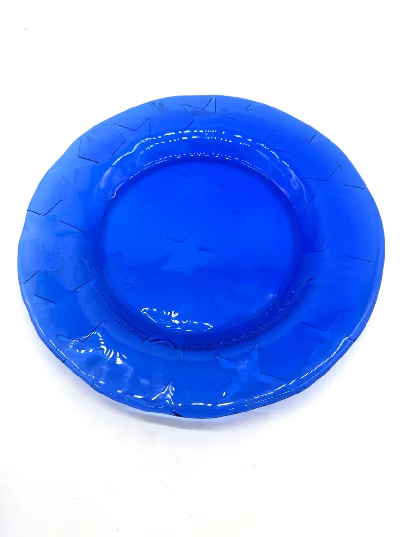 Cobalt Blue Glass Plate & Bowl - Vintage Villeroy & Boch Dinner With Stars 10.5”W & 9”W