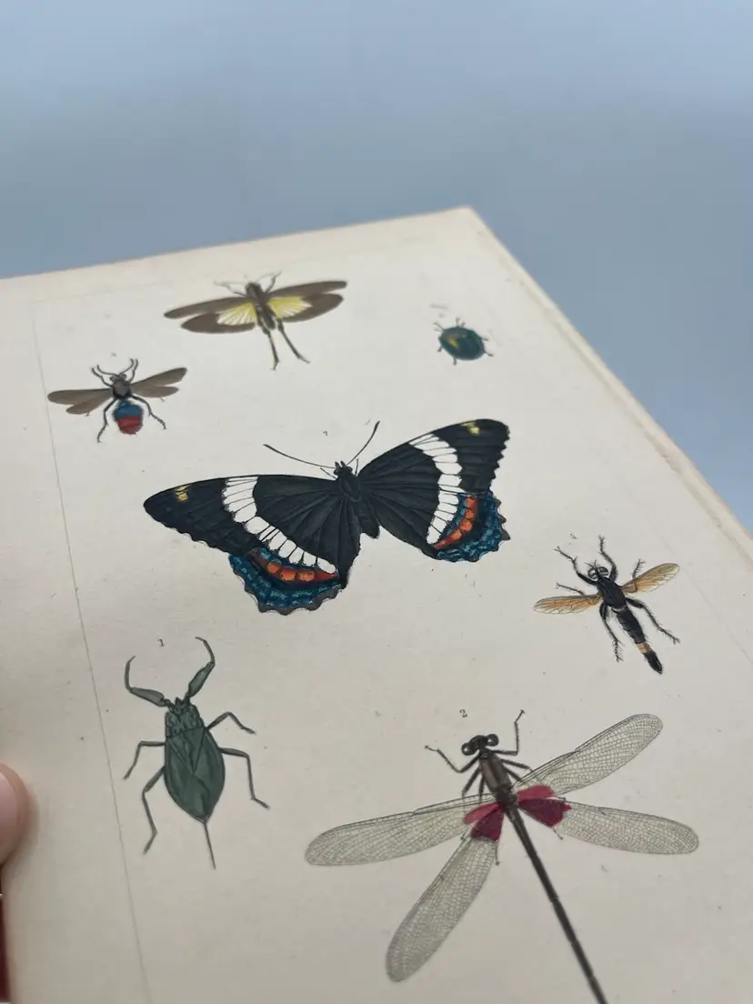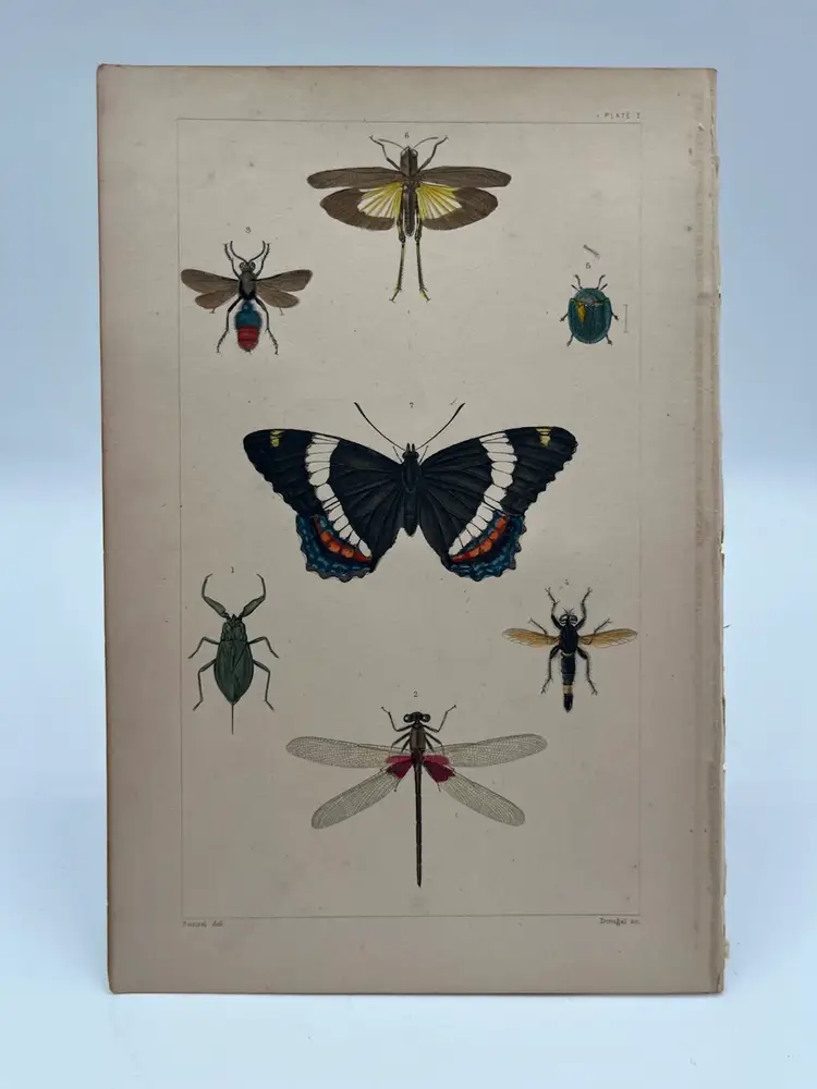 Plate I - Original Steel Plate Colored Book Page Print, 1862, Insects