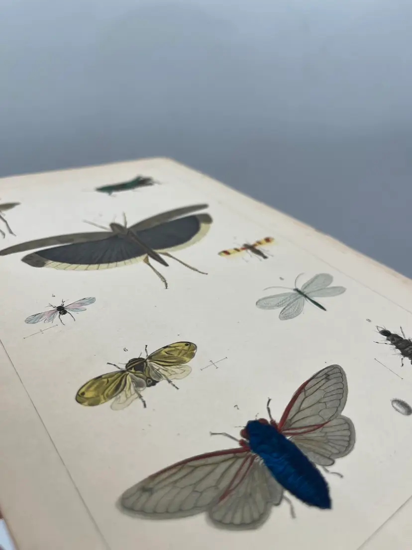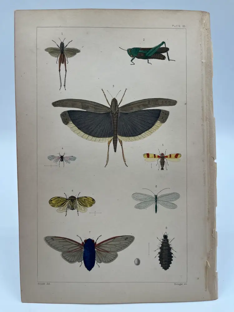 Plate III - Original Steel Plate Colored Book Page Print, 1862, Insects