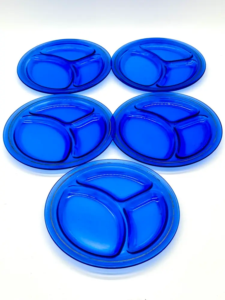 Plates - Dishes Cobalt Blue Glass Vintage Antique LE Smith Cobalt Glass Homestead Grill 9”W - Set Of 5