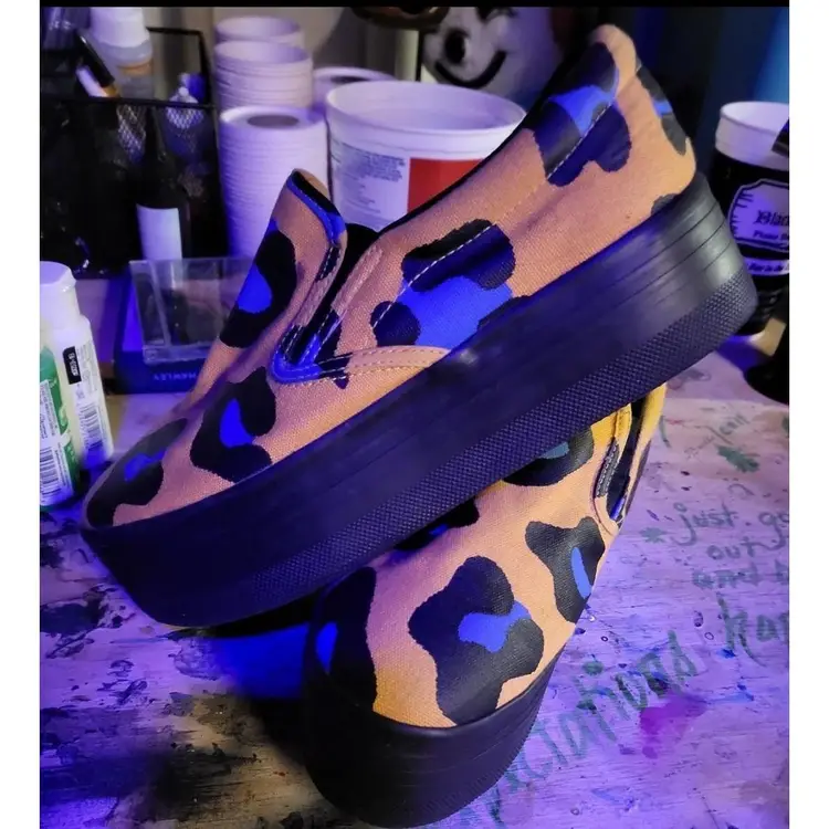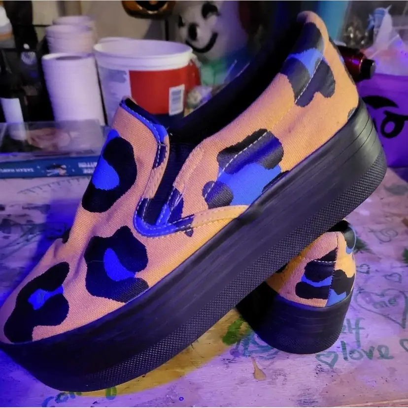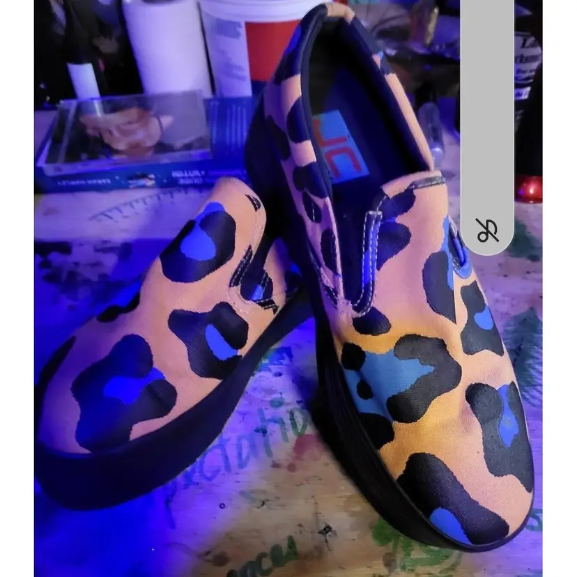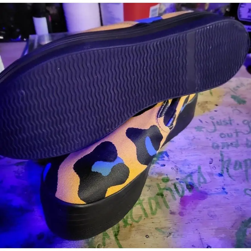 New with no tags Multi color leopard print slide sneaker Black platform soles with no wear 1 spot noted on left front, see picture Womens size 9