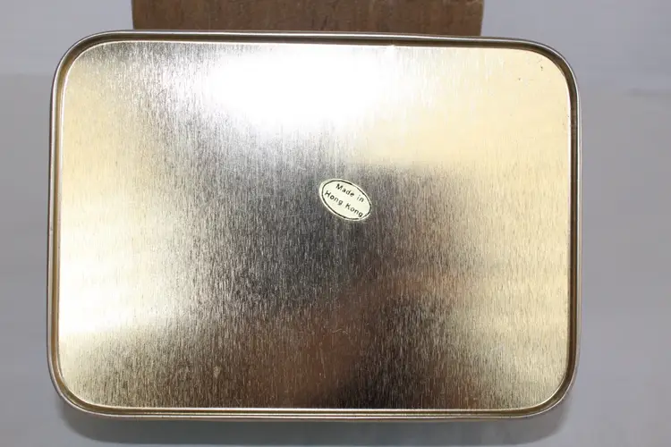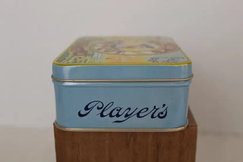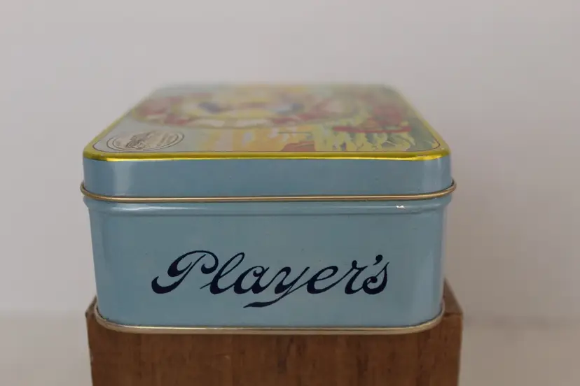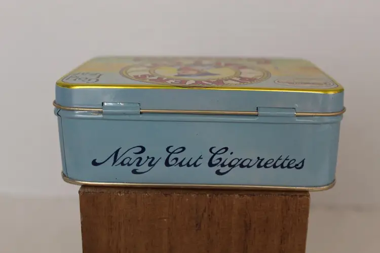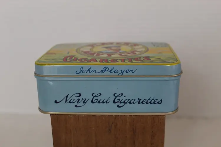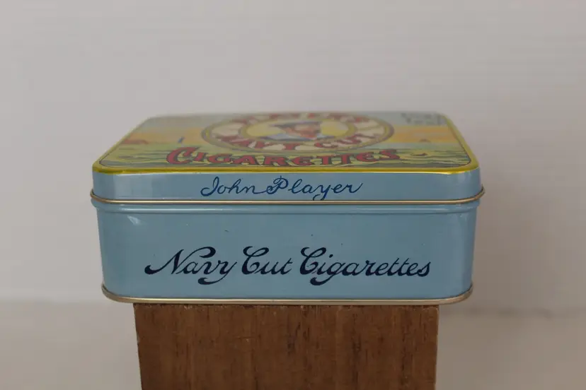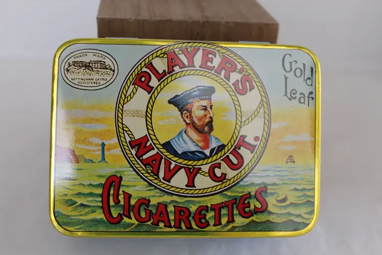 The Player's Navy Cut Cigarettes Gold Leaf Tobacco Tin is a highly collectible item originating from the United States. With the iconic Player's brand and unique design, this tobacco tin holds historical and nostalgic value for collectors. The gold leaf accents add a touch of elegance to the piece, making it a sought-after addition to any collection of tins or tobacciana memorabilia.This piece is in excellent condition.