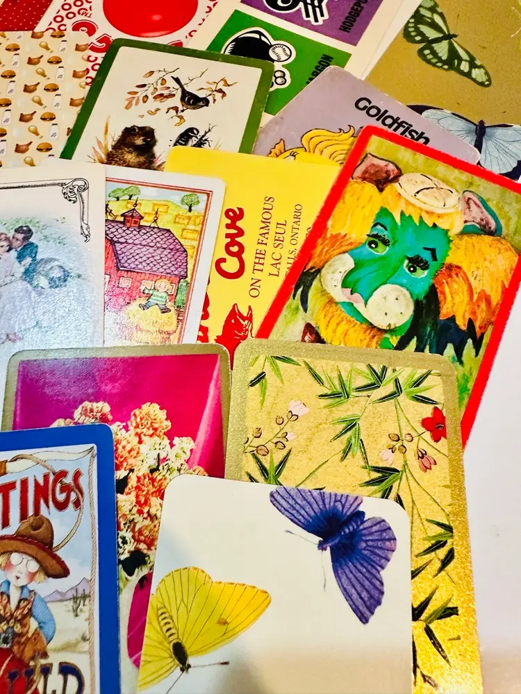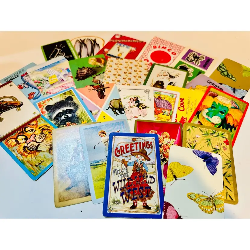 A fun mix of 20 vintage and retro playing cards, perfect for crafters, collectors, or anyone who loves unique paper ephemera. Each bundle is a surprise assortment — no two sets are exactly alike!