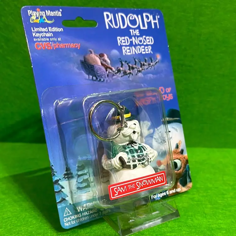 Extremely rare Sam, the snowman Rudolph, the red nose, reindeer keychain brand new never opened still in the box they must have for any collector.