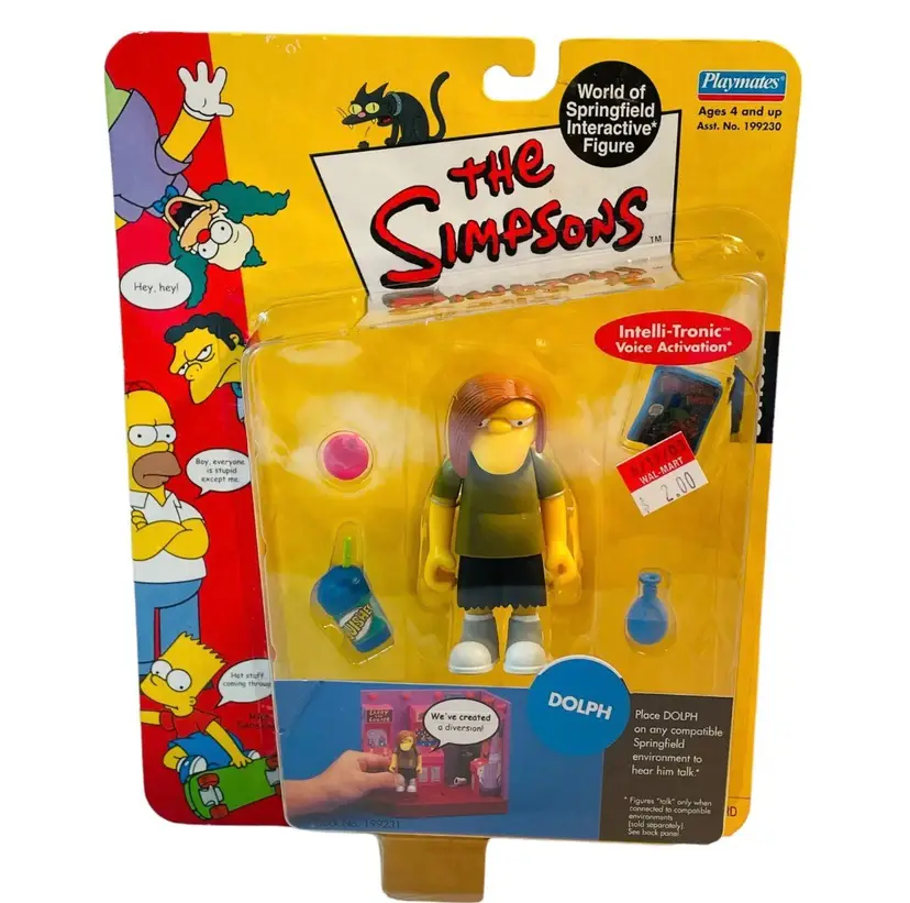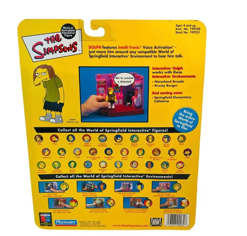 Playmates 2001 Simpsons DOLPH World of Springfield Interactive Figure Series 7. Vintage sealed in original packaging. See all photos!