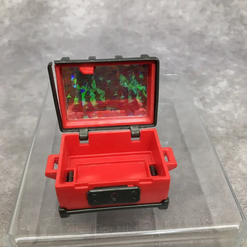 Comes with what is shown in pictures. Lock works Chest has a broken piece. A pre-owned item with some wear and marks from play. I tried to include pictures from every angle to give you an accurate look at this item and it's condition.