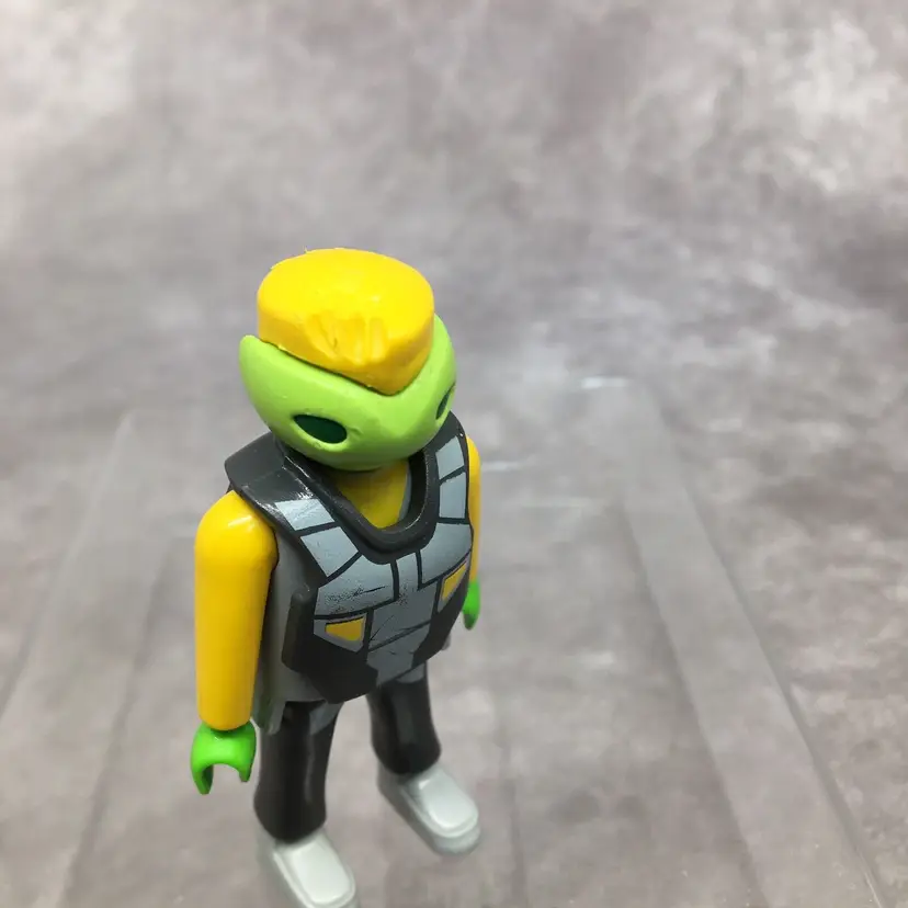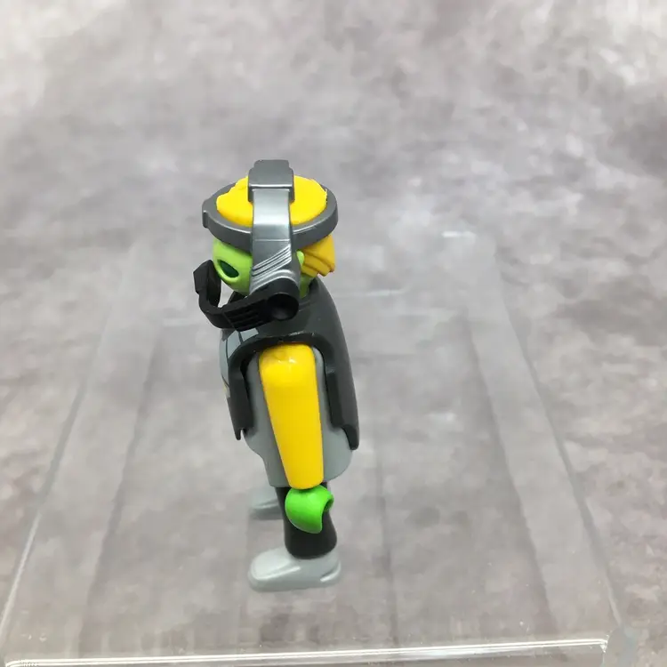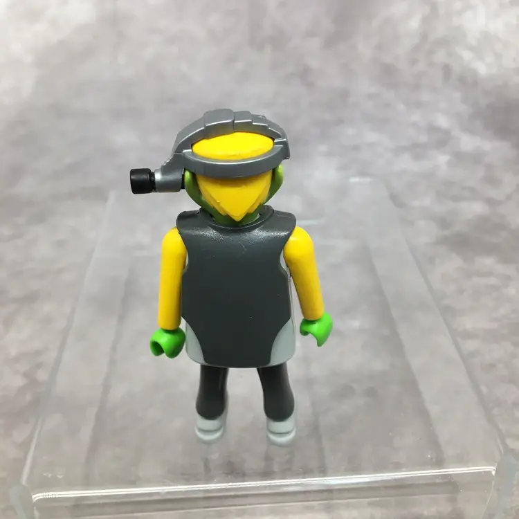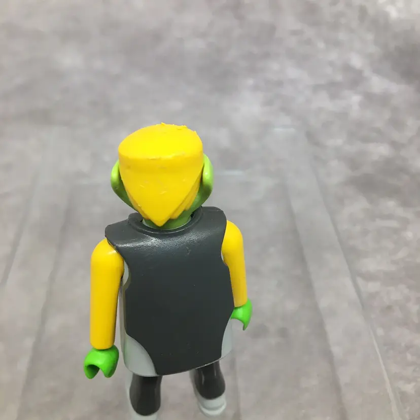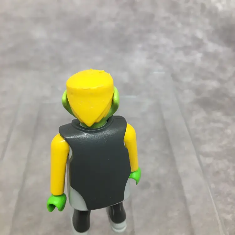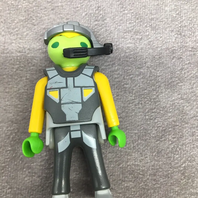 A pre-owned item with some wear and scuffs from use. Someone chewed on his head.