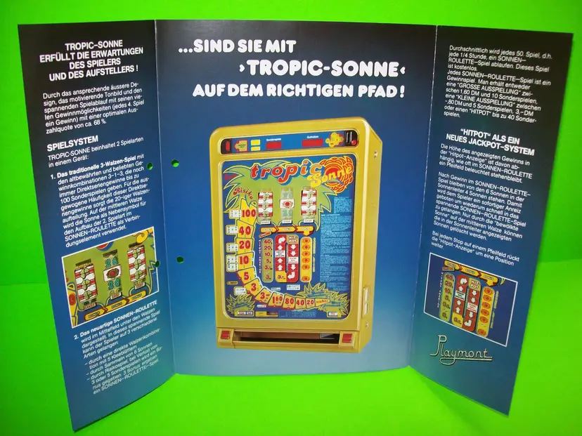 Playmont TROPIC SONNE Original German Text Slot Machine Foldout Sales Flyer