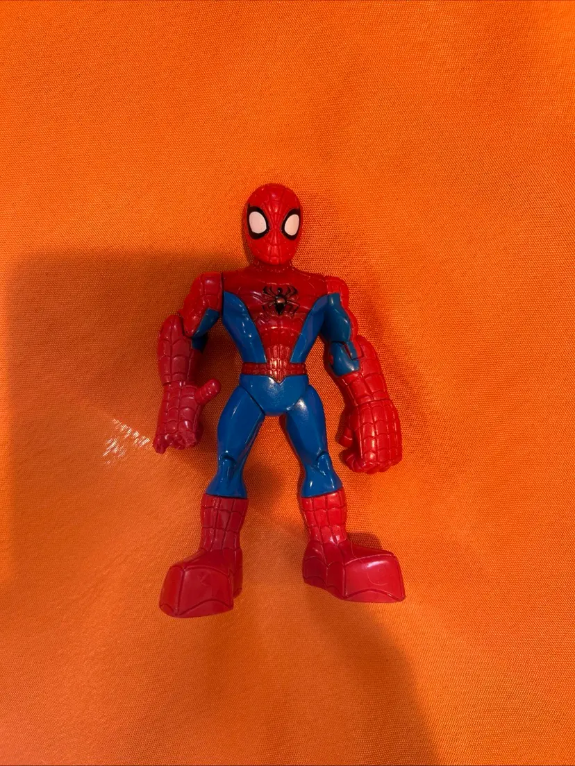 This is a Playskool Spider-Man action figure measuring 5 inches, released by Hasbro in 2011 as part of the Super Hero Squad Imaginext line. It belongs to the Spider-Man character family and is designed for preschool-aged children.