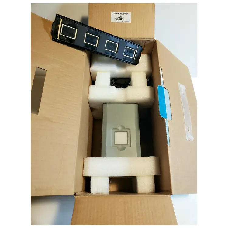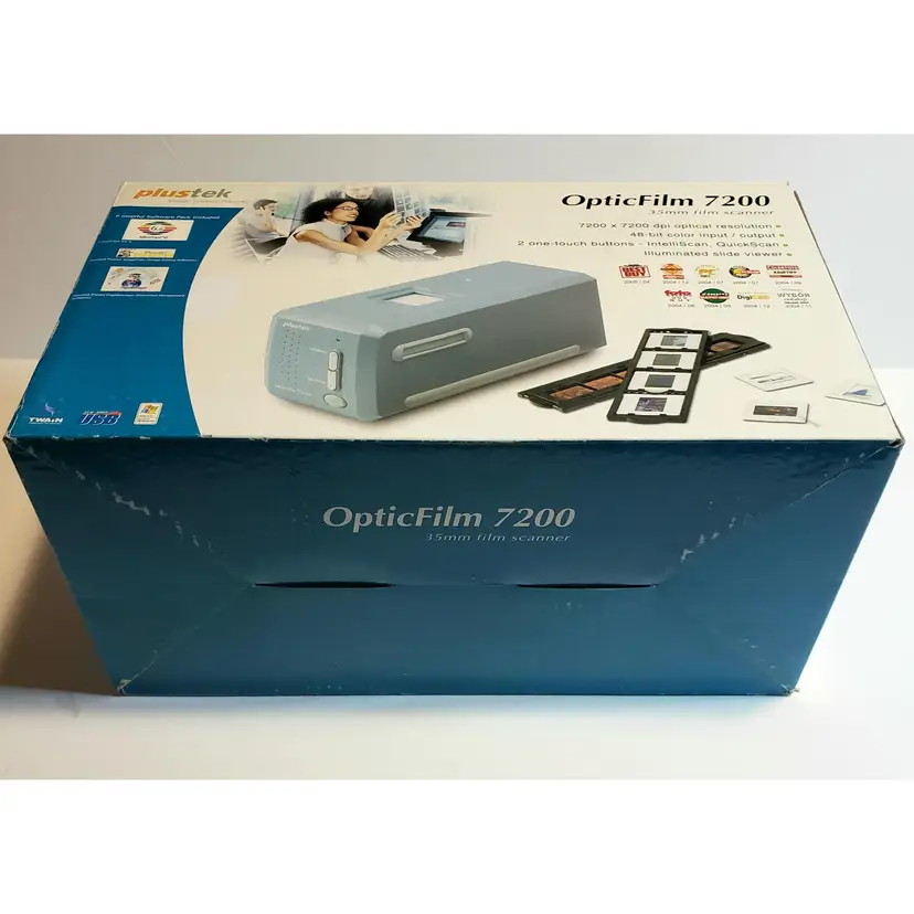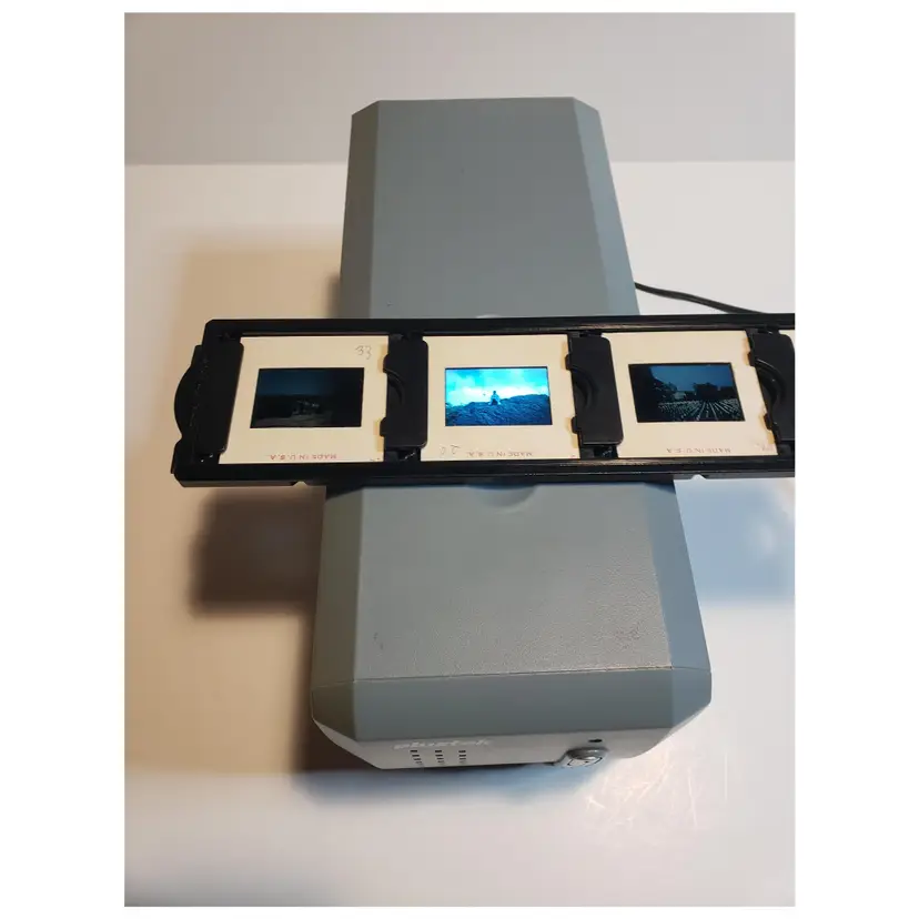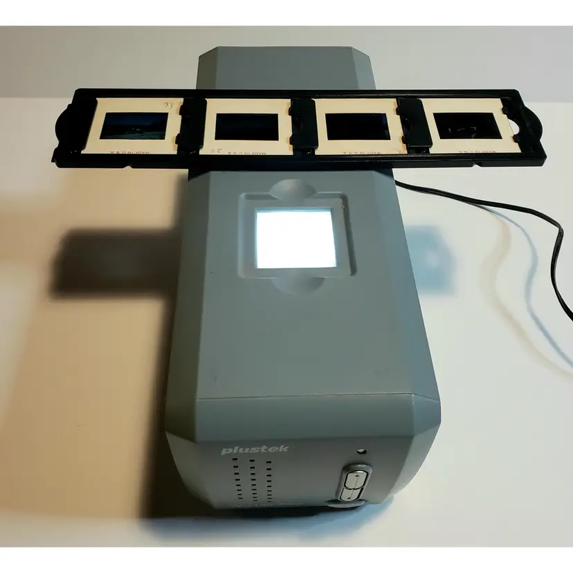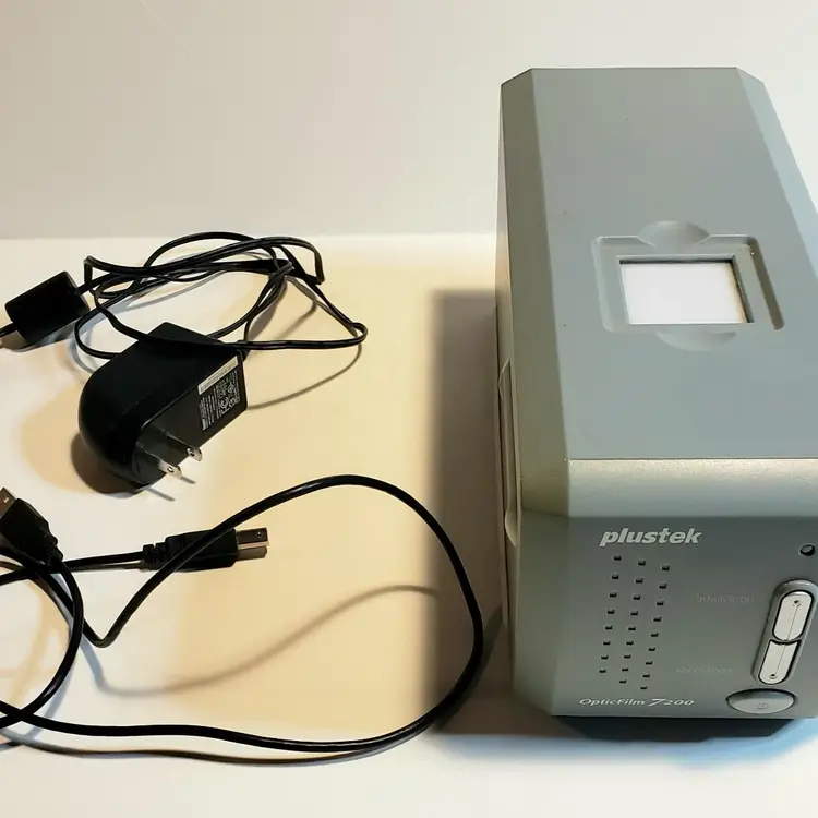 Gently used in box. Comes with what is shown. Includes power and connecting cord and one slide tray with a few old slides. No software. This was tested by powering up and connecting to a PC with Windows 10. The PC recognized the device, but I do not have the software or drivers to further test it.