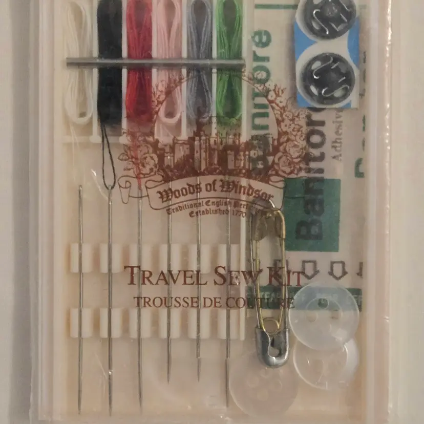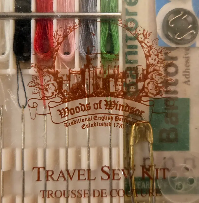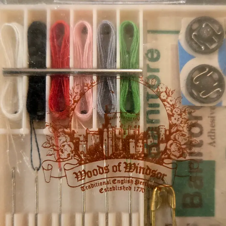 Pocket TRAVEL SEW KIT Woods of Windsor 2¼"x3" in Original Plastic Packaging Vintage. Used condition only because the cellophane cover has some age, otherwise no signs of use. Please view all the photos and please ask any questions prior to purchase when possible.