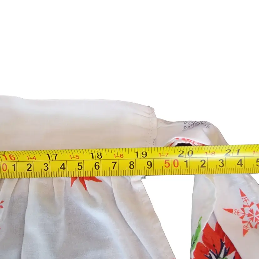 Measurements approximately: Waistband 19 inches Length 26 inches Ties 2 x 29.5 inches each