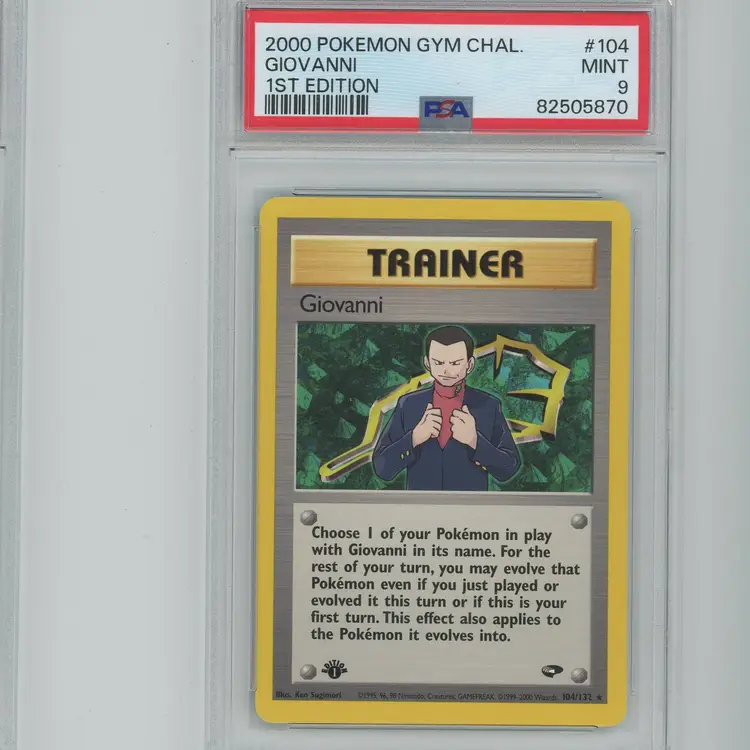 Pokémon 2000 1st Edition Gym Challenge Giovanni Trainer 104/132 PSA 9