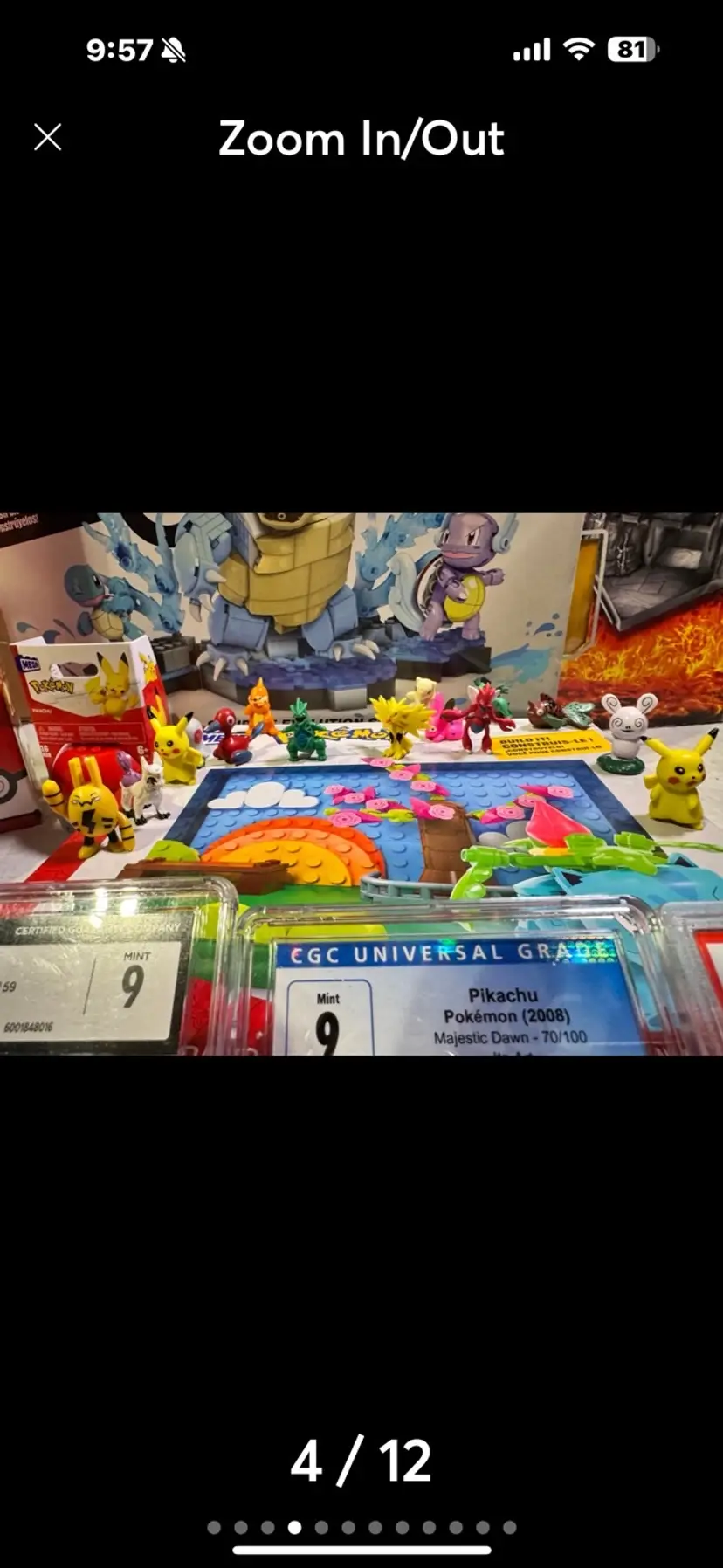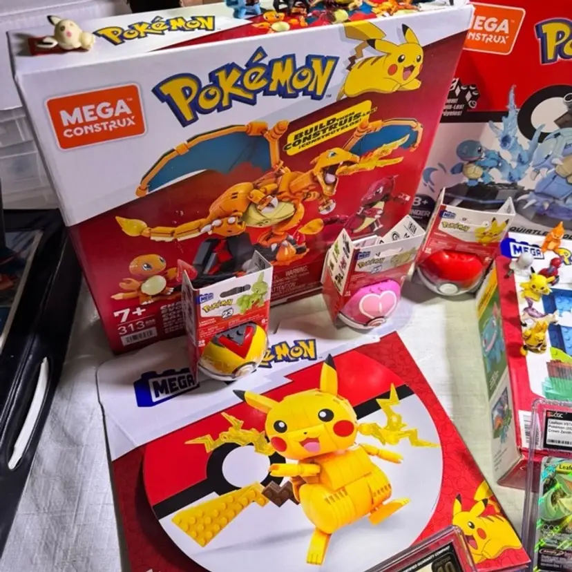 Pokémon 4 graded slabs, stacks of cards including multiple foils, SEALED ONE OWNER (me) NEW mega #379 Squirtle Evolution set, ONE OWNER Mega Pikachu set, ONE OWNER Mega Park scene set, ONE OWNER (me) Mega Charmander Evolution set, 20+ mini figures, ONE OWNER 3-new figure balls. all of these AWESOME pokemon items are from our personal pokémon collection, have all been on display in our toy sho room and very well taken care of. we bubble wrap and box all of our items EXTREMELY WELL for their journey to your home. all of these FANTASTIC pokémon are from a smoke free environment. this is a VERY LARGE HeAvY bundle.