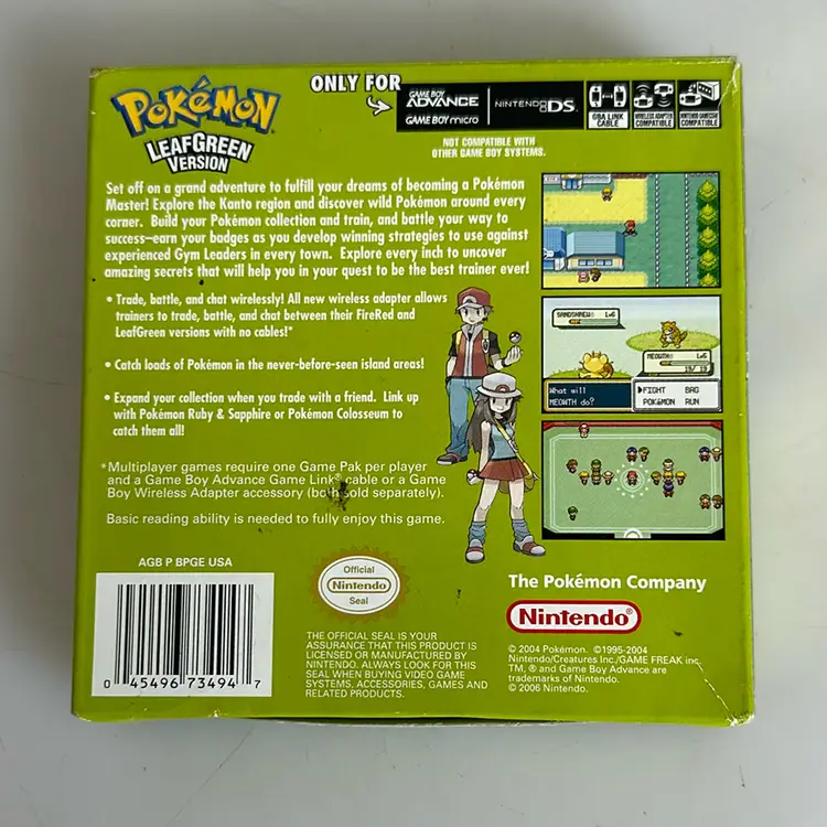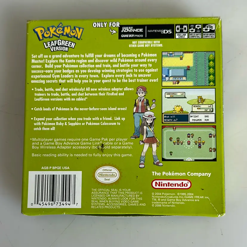 This action is for box only Game Boy advance Pokémon, leaf green version with manuals