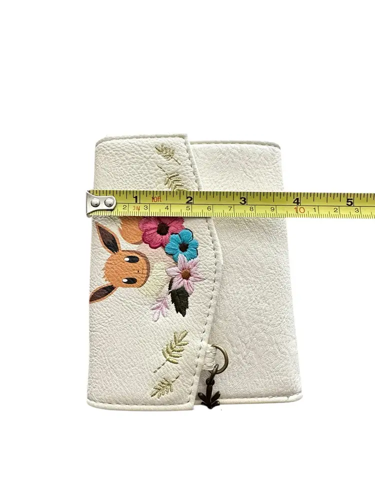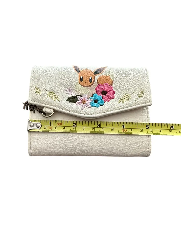 This Pokémon x Loungefly Eevee Eeveelutions Floral Micro Wallet is a must-have for any Pokémon fan. The wallet features Eevee and its evolutions in a beautiful cream multicolor floral design. Made of durable polyurethane material, this wallet is perfect for storing your small items like cash, credit cards, and your phone.