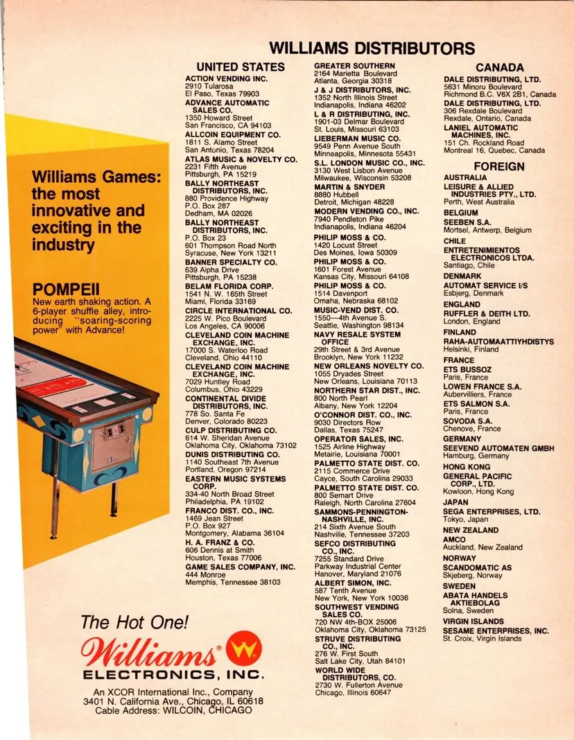 Brand: Williams Year: 1979 Country/Region of Manufacture: United States