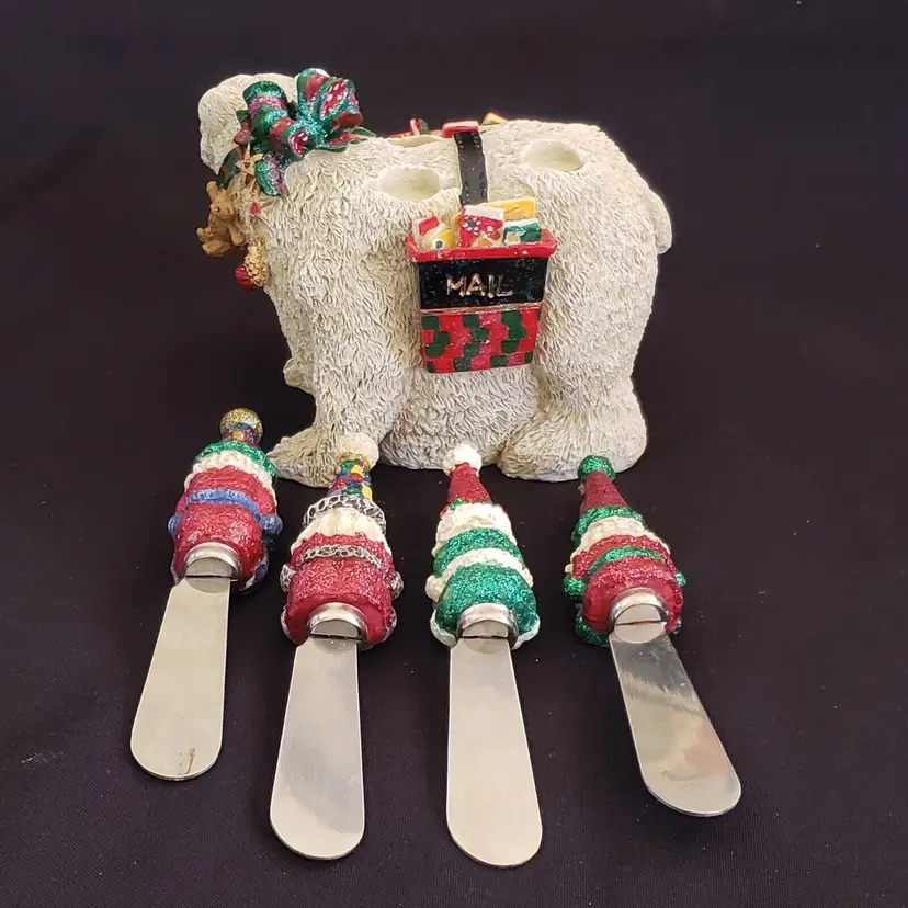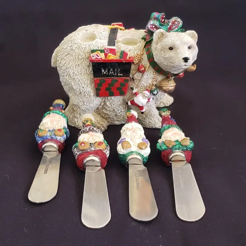 Brand: Unbranded Type: Holliday Cheese Spreaders & Christmas Polar Bear Occasion: Christmas Color: Multicolor Material: Resin, Stainless Steel Country/Region of Manufacture: China Subject: Winter Holiday