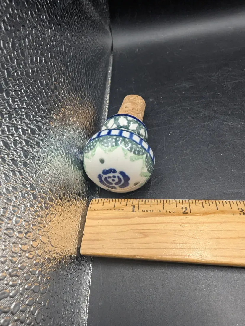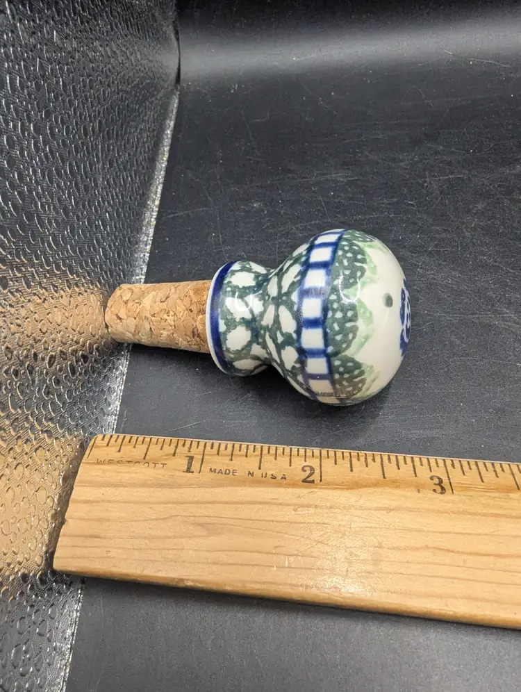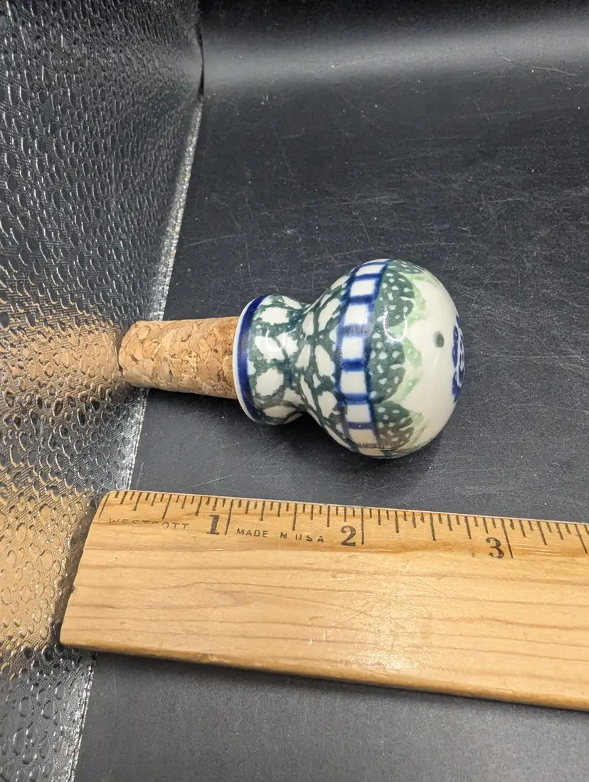 This is a lovely Polish Pottery Hand Painted Wine Stopper. It is done in traditional blues and greens and has never been used. Please see all pictures for condition and measurements.