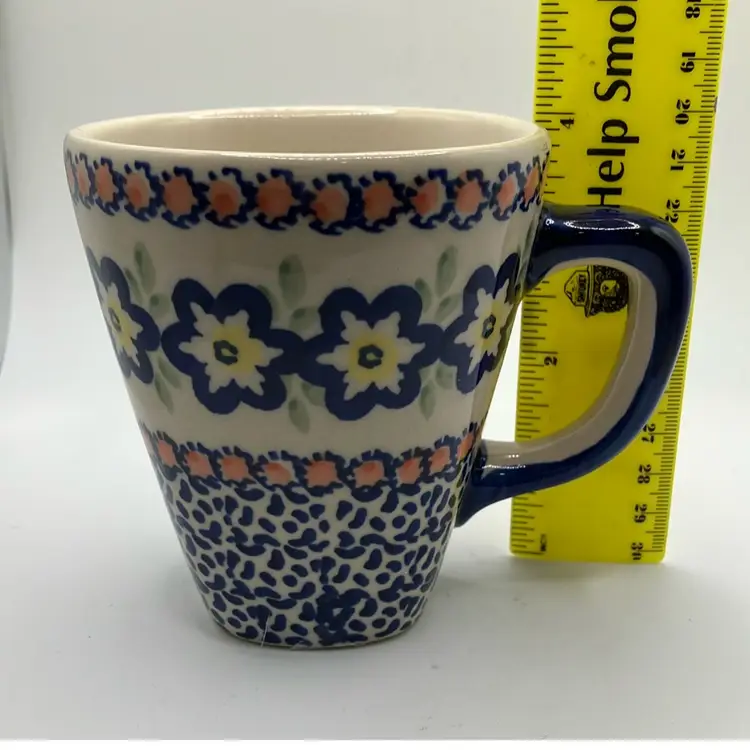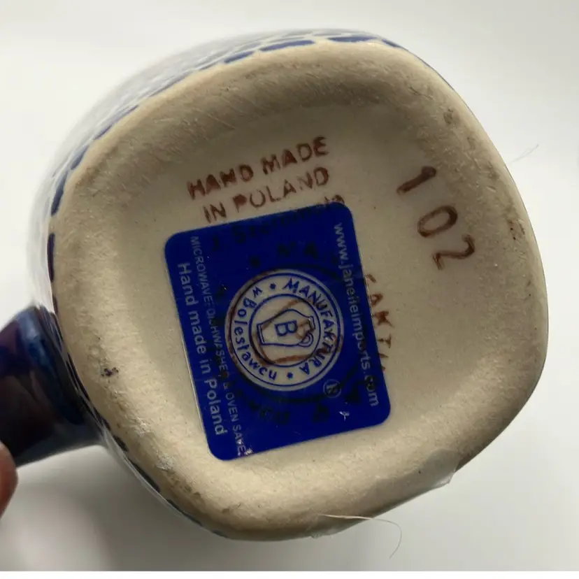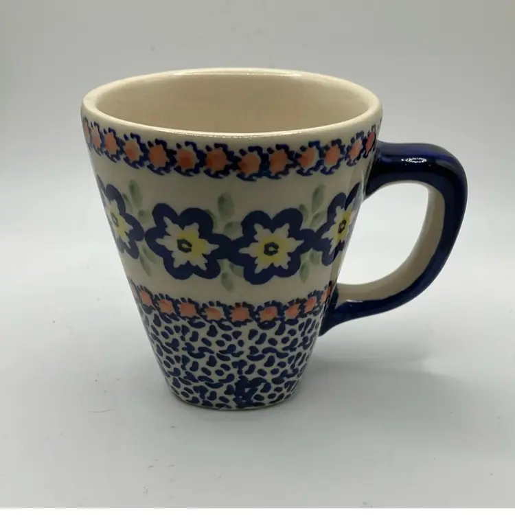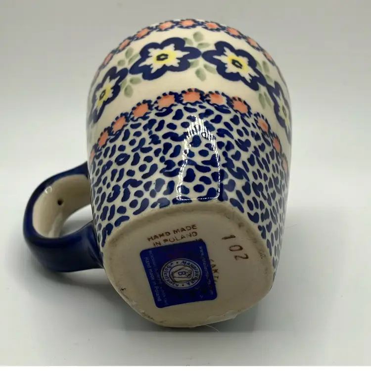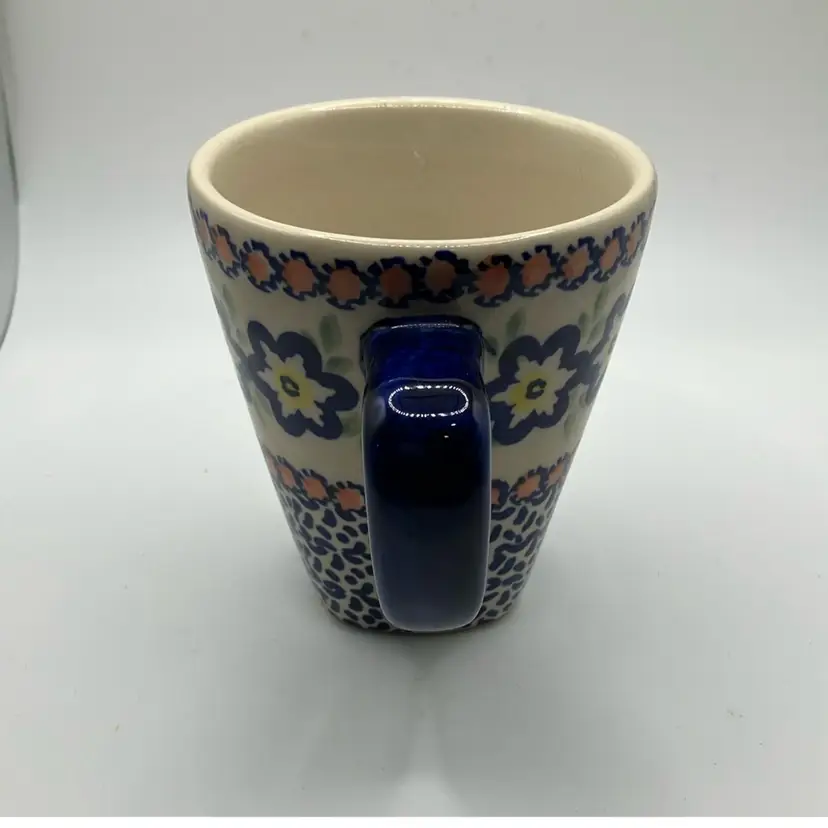 Beautiful handmade Polish pottery mug. Good condition- no chips/cracks. Marked and numbered on bottom.