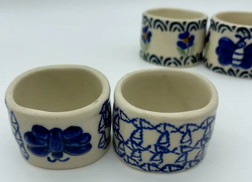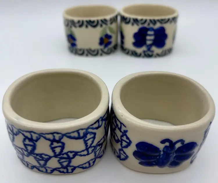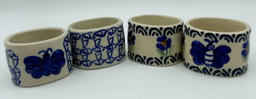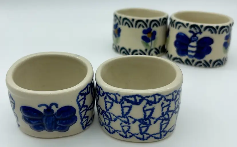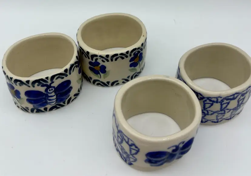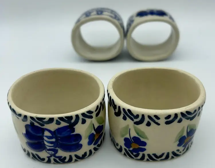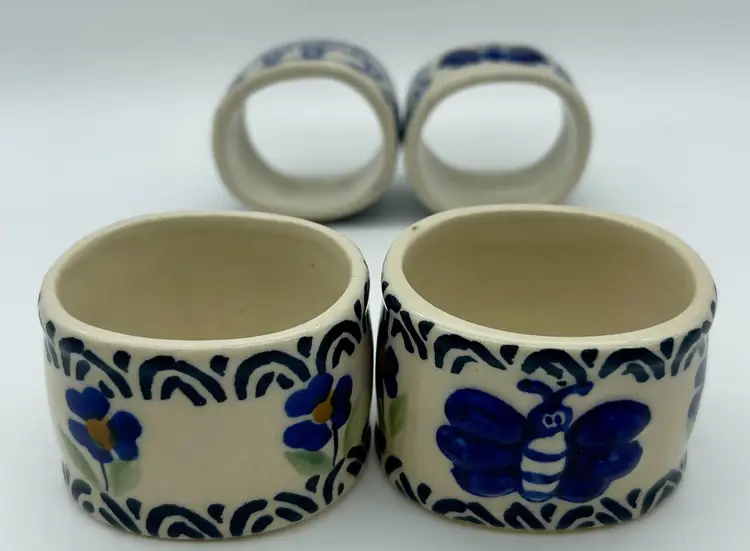 Mixed set of butterfly and mariposa lily pattern. Made in Poland. Excellent pre-owned condition, no chips, cracks or breakage. Dimensions: rings are roughly 2" diameter.