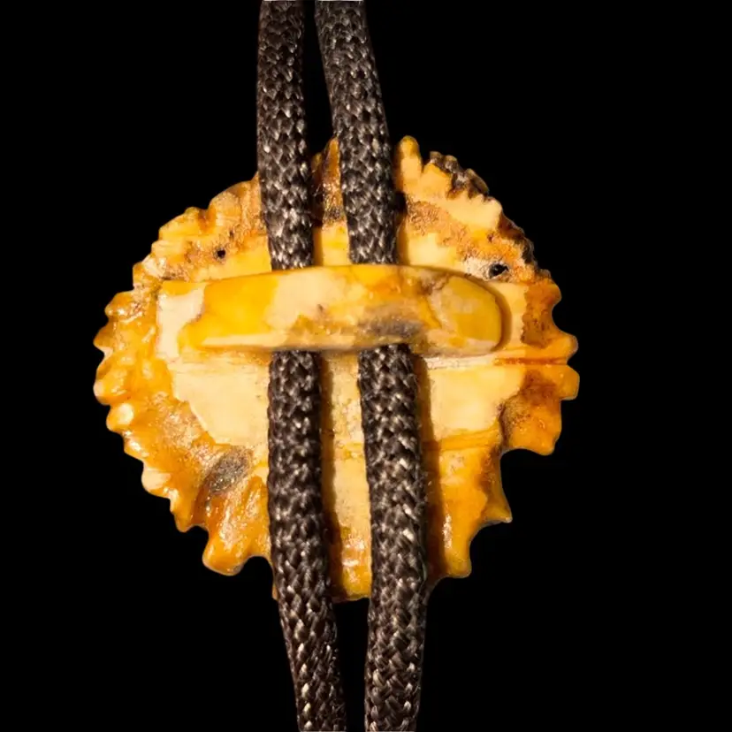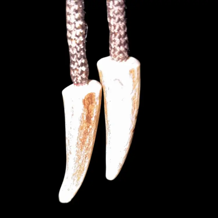 Materials: antler, horn, naturally shed wild moose antler, real moose antler burr. Tie is braided brown silk cord.
