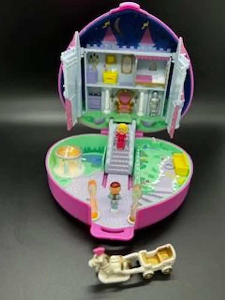 This and my other Polly Pocket figurines and sets from Bluebird Toys, Swindon England (manufactured in China) belonged to my daughters, ages 38, 36 and 34 now. They don’t have any daughters and don’t have any interest in keeping these, so I am selling them. They are all in excellent used condition by three girls who loved them and gently played with them. They come from a smoke free home with no pets. Please look closely at all pictures before purchasing.