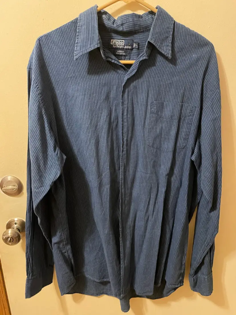 The Polo Ralph Lauren Men's Long Sleeve Button-Up shirt is a classic and versatile piece for casual occasions. Made from comfortable cotton knit fabric, this solid multicolor shirt features a collared neckline and long sleeves, perfect for all seasons including winter, fall, and spring. With a regular fit and classic collared style, this shirt is machine washable for easy care and is available in size L. Personalization or vintage elements are not added to this timeless and stylish addition to any man's wardrobe.