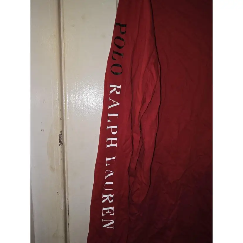 Preowned. Polo Ralph Lauren T Shirt Long Sleeve Graphic Print Crew Mens Medium Red. Has some lint and loose threads from storage. Has some small holes on the front towards bottom of shirt. Made in Vietnam. Mens size medium.