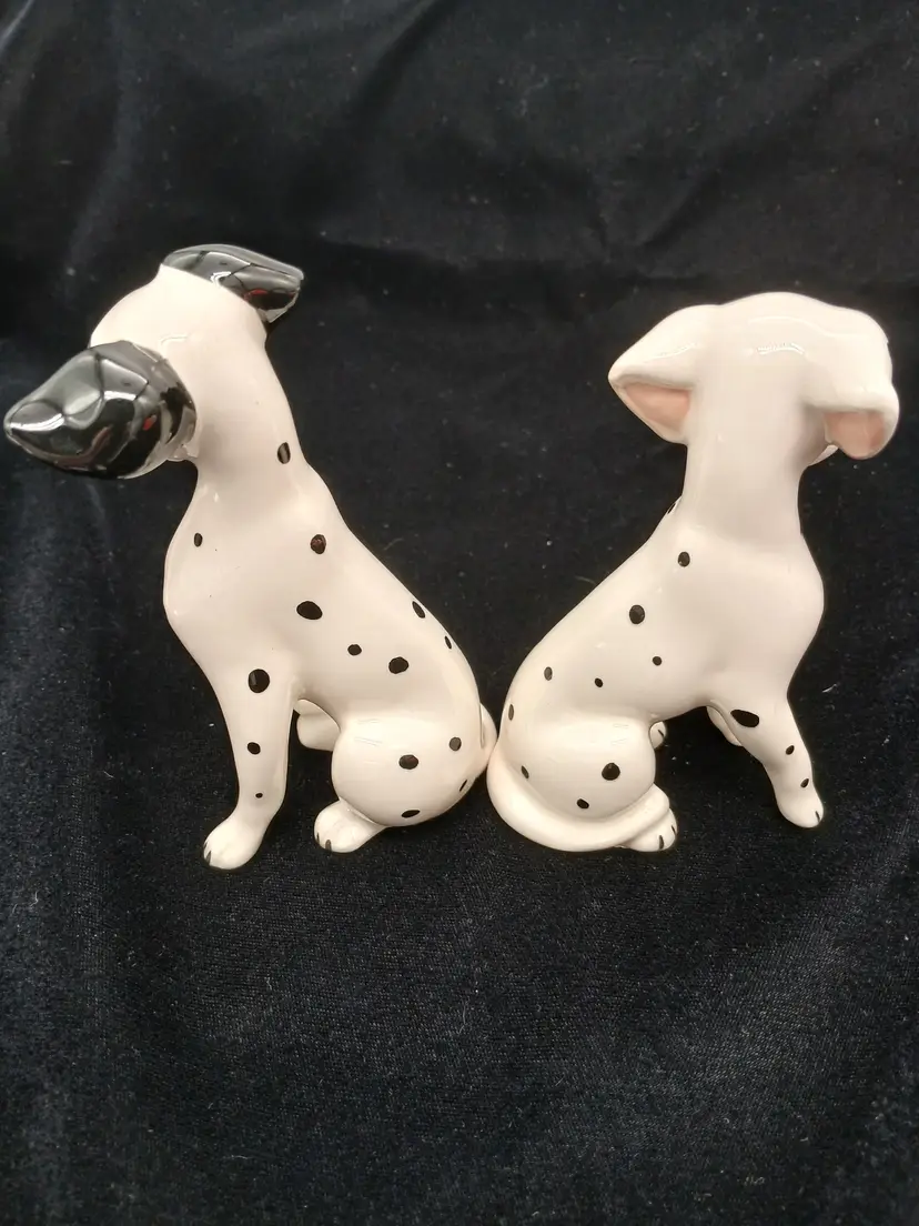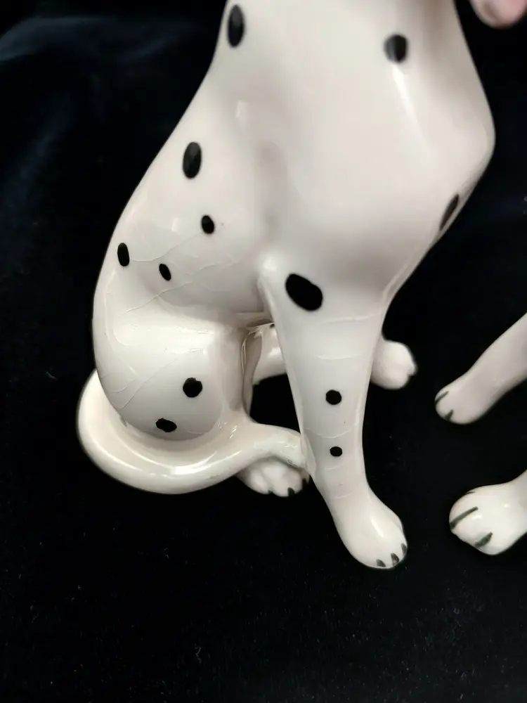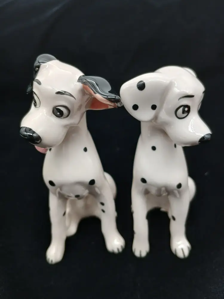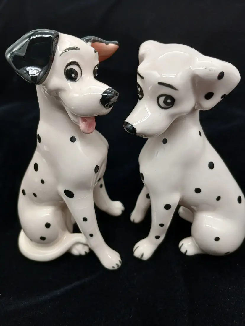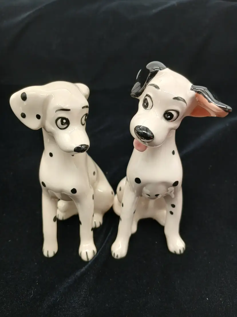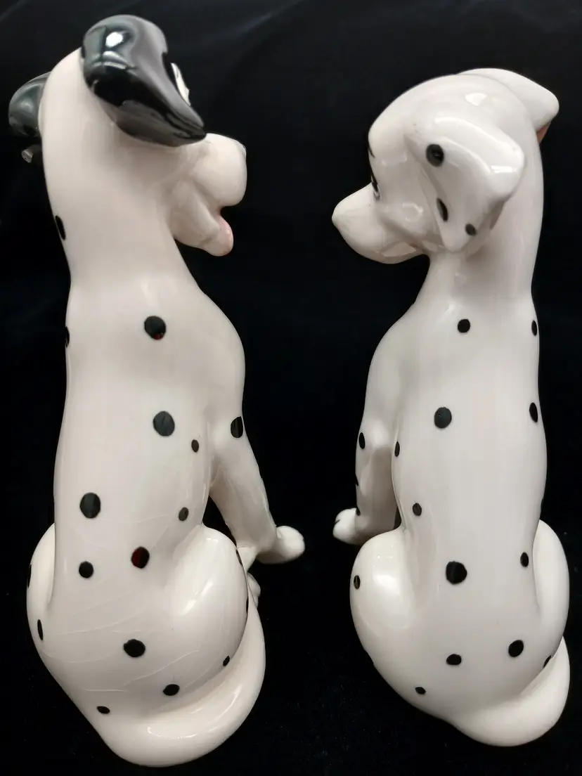 About 5" tall. Pongo and Perdita from Disney's 101 Dalmations. Stamped Disney Japan on bottom. Pongo has a bit of crazing, shown in the photos, that is only visitble under extremely bright light.